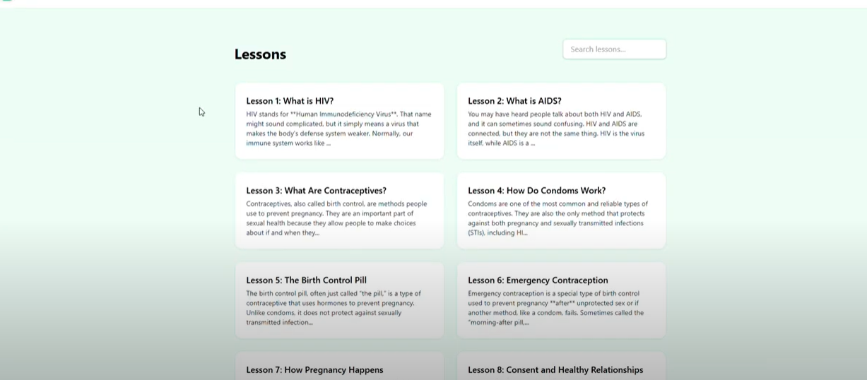 - Lesson Page - Youth can learn about their bodies and how to have healthy relationships. The information is from trusted sources like the WHO and UNFPA guidelines to ensure accuracy.