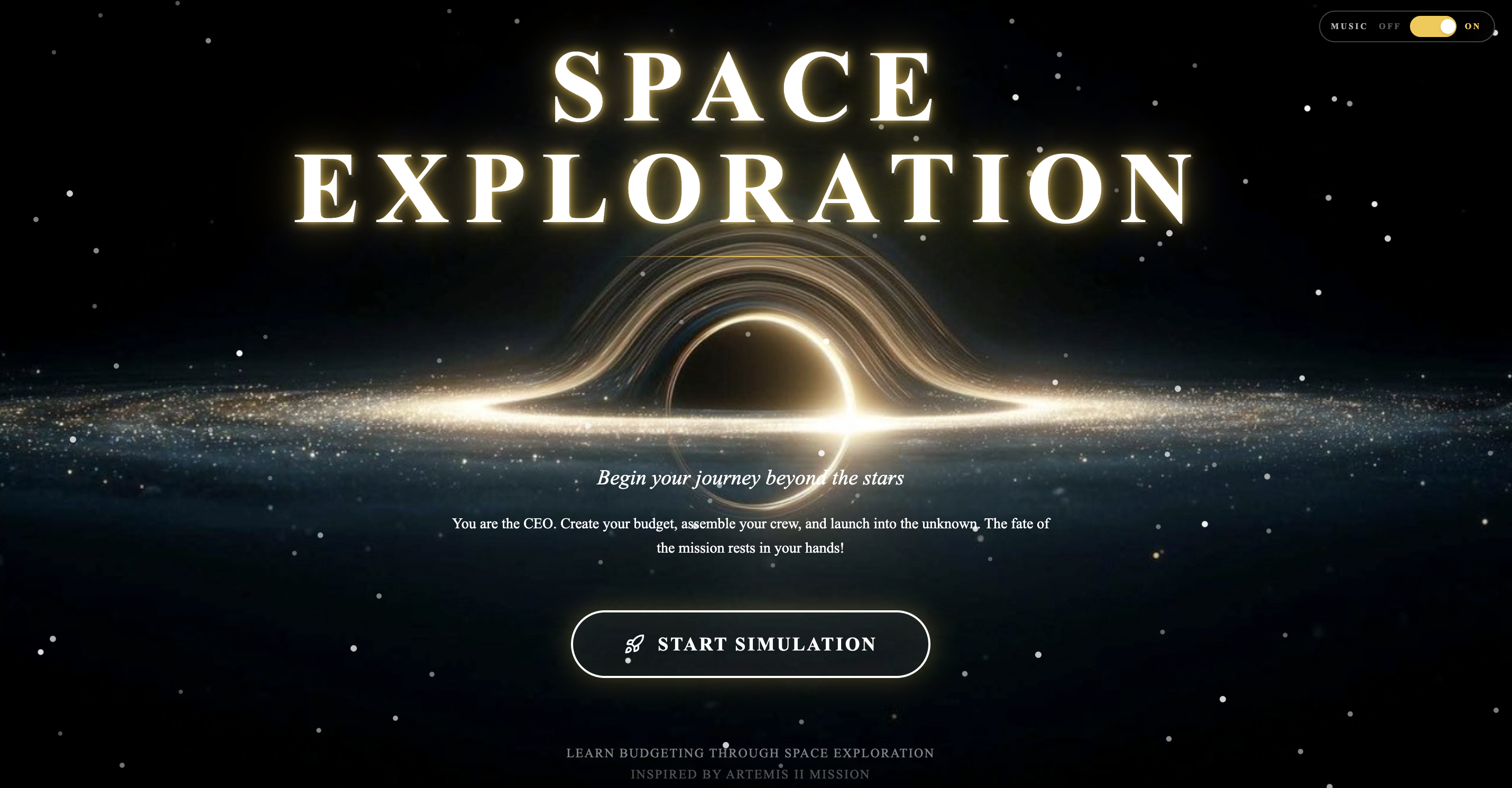 Our Inspiration for this came from the launched Artemis II space mission - the first crewed lunar flyby since Apollo 17, launching humanity back into space. We wanted to capture this space exploration and transform it into an inspiring and informational simulation where people can take a space mission into their own hands.