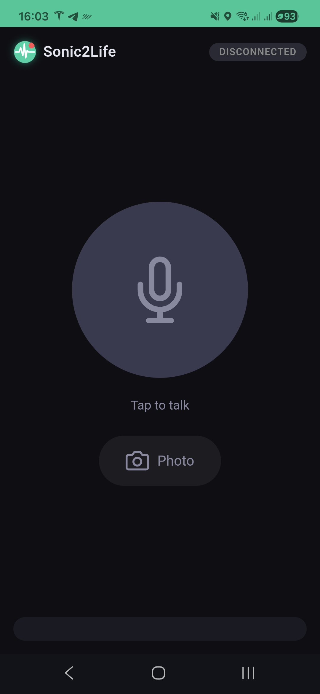 Sonic2Life is a 100% voice-first Progressive Web App designed for elderly people and visually impaired users. The entire interface is a single large button — press it and talk. The AI handles everything else.