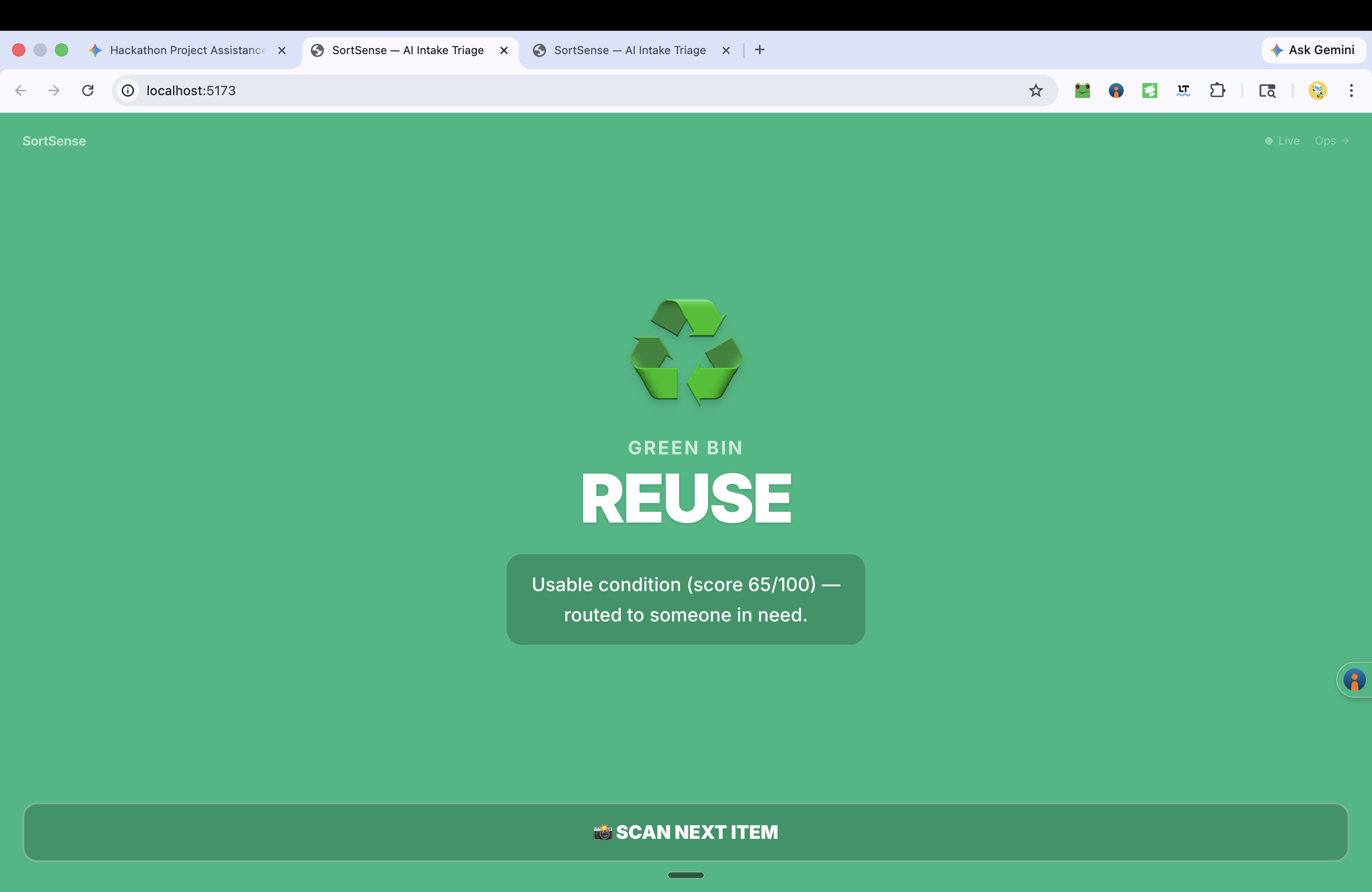 That is what makes SortSense meaningful to us. It is not just about classifying objects. It is about helping donation systems work better at the exact point where value is either preserved or lost.