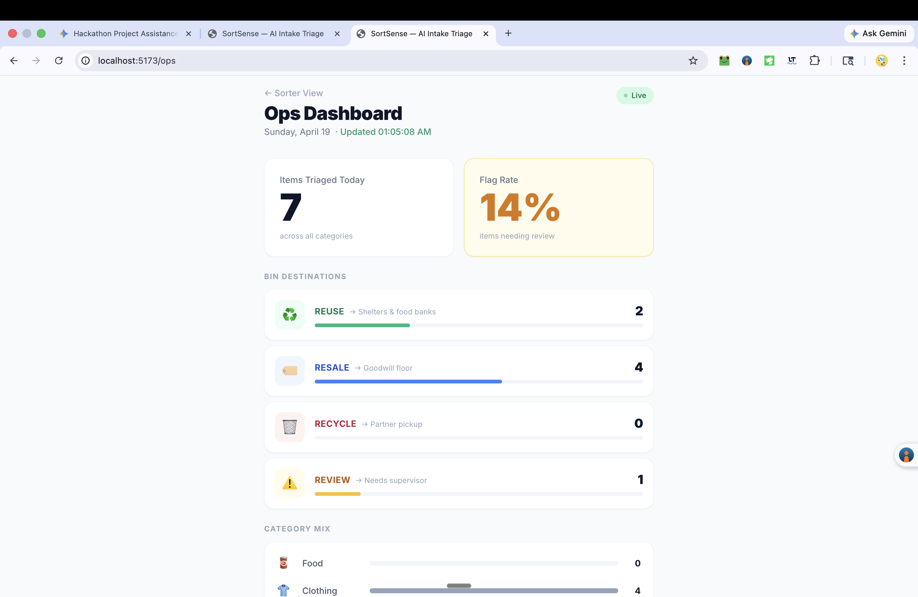 SortSense is an AI-assisted donation triage tool for intake staff.