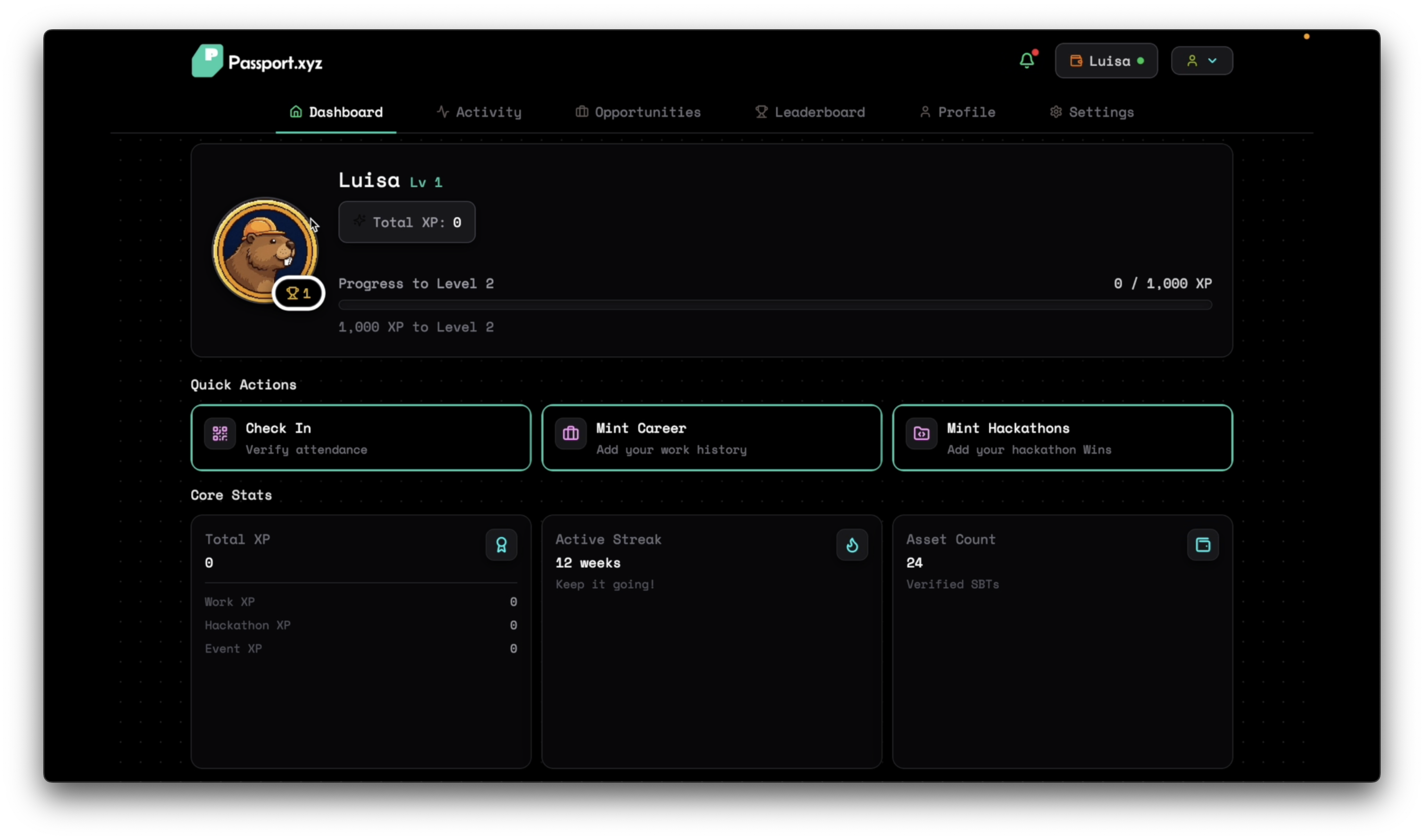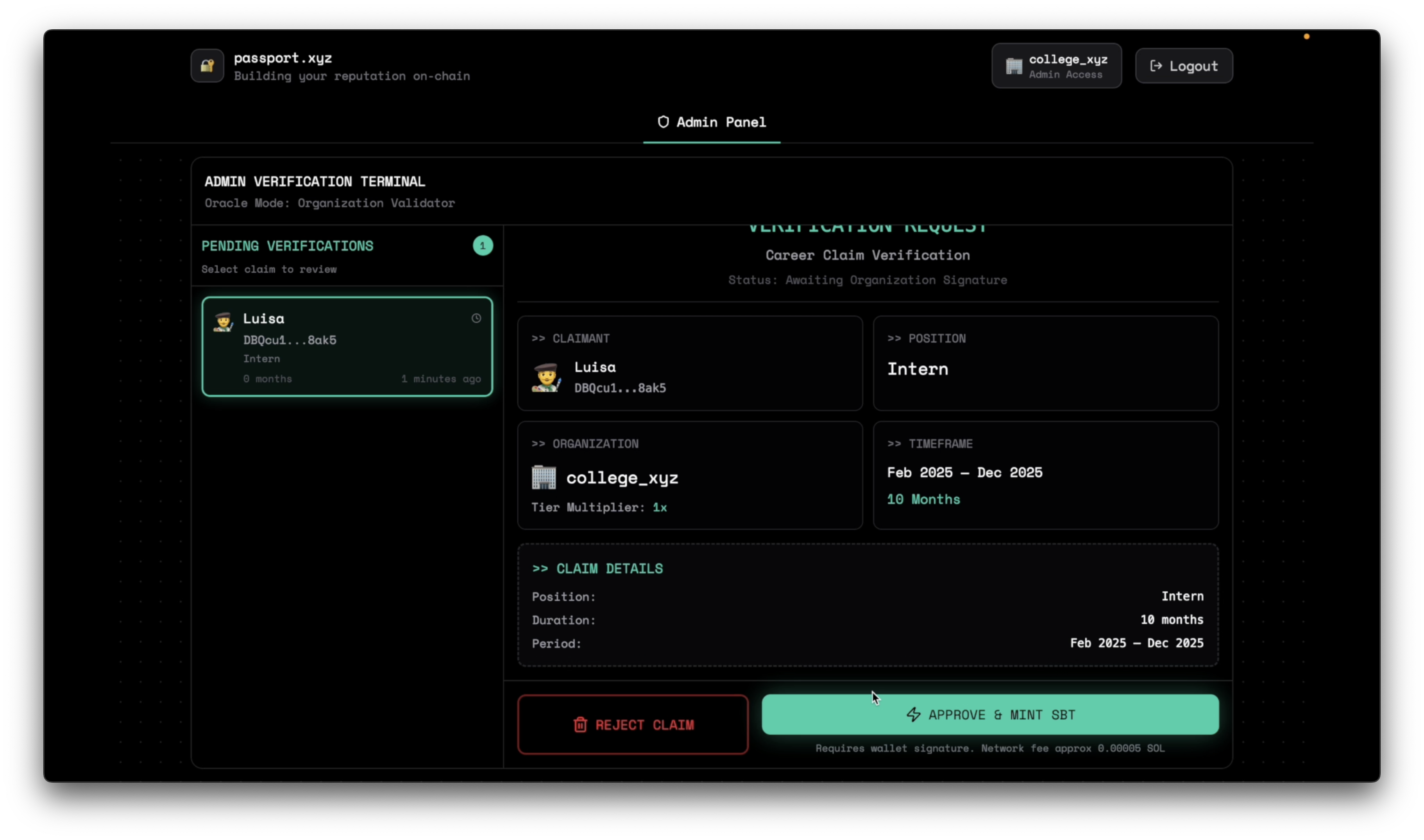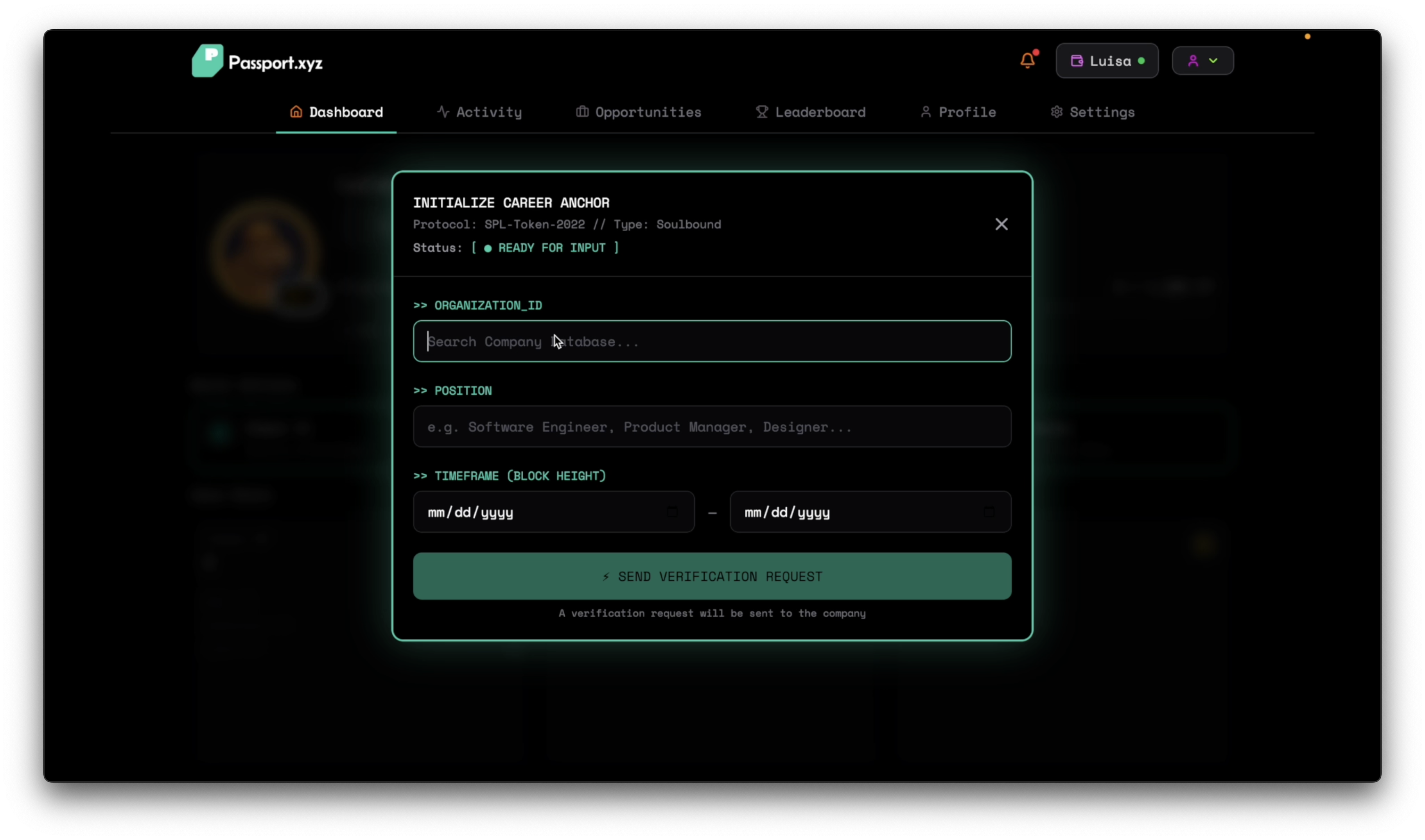 - Cross-platform integration with GitHub, Devpost, LinkedIn, and Solana wallets