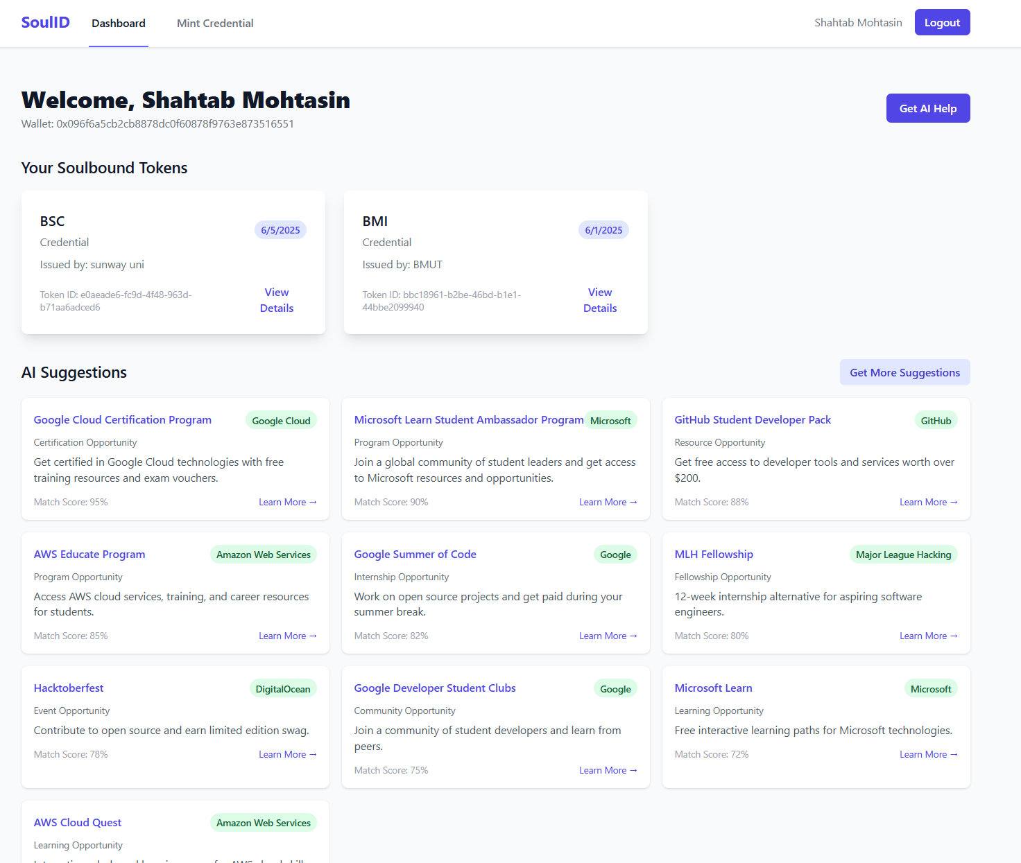 Users can also access an AI assistant that recommends jobs, grants, legal aid, and local services based on their profile. There is also a public verification tool to confirm the authenticity of any SoulID-issued credential.