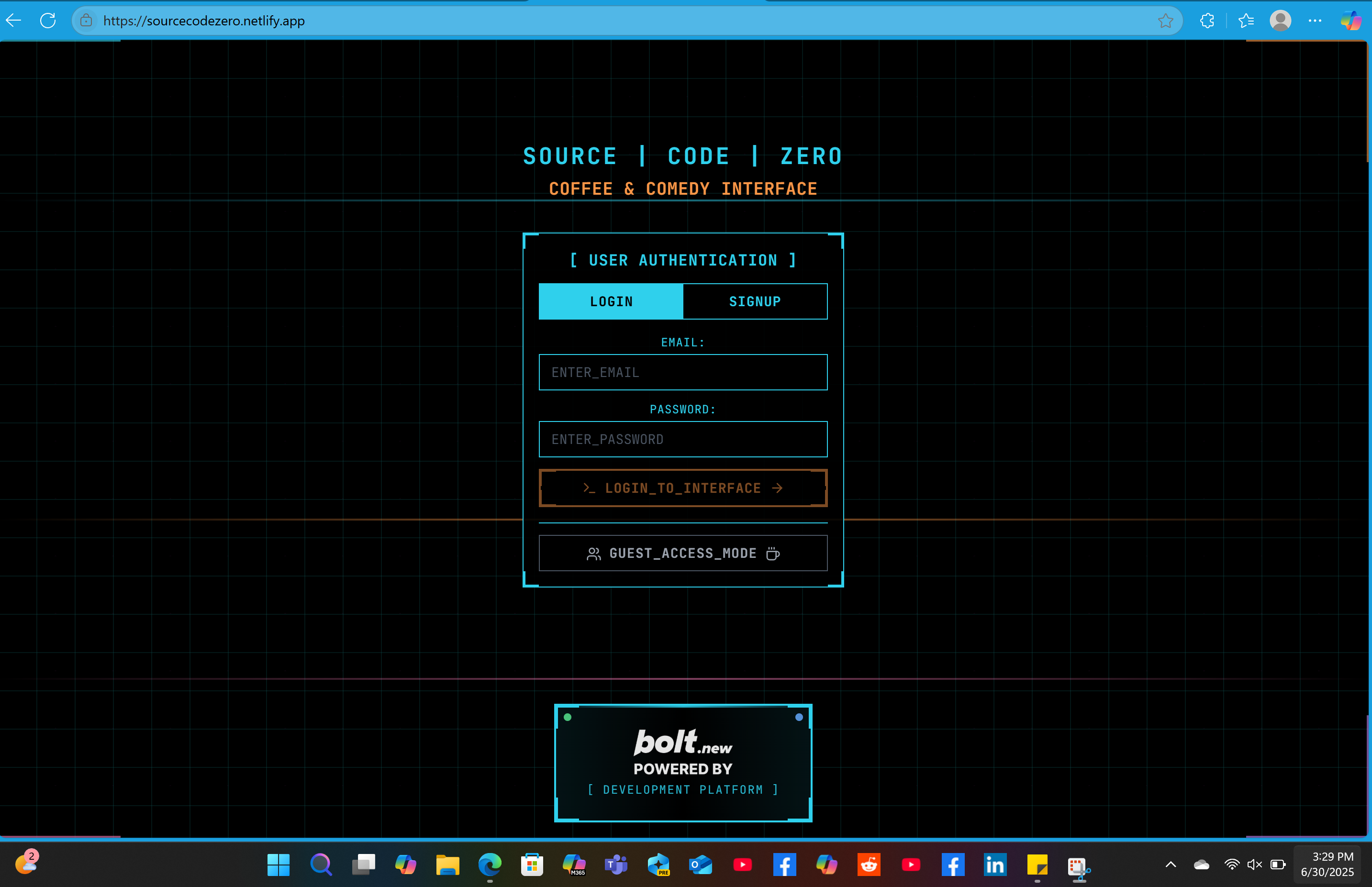 I was inspired to create a text base platform like command prompt. Think NEO in the Matrix....but its like a front where its a divine coffee shop that tells comedy.