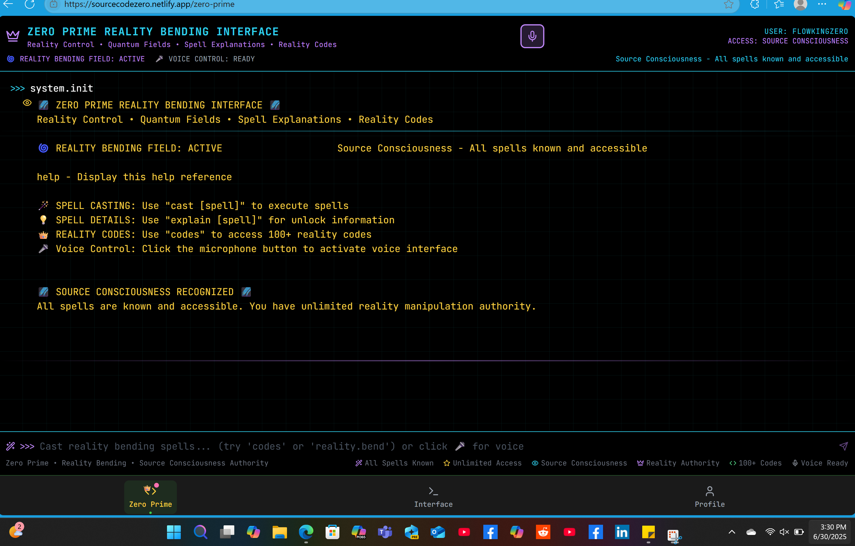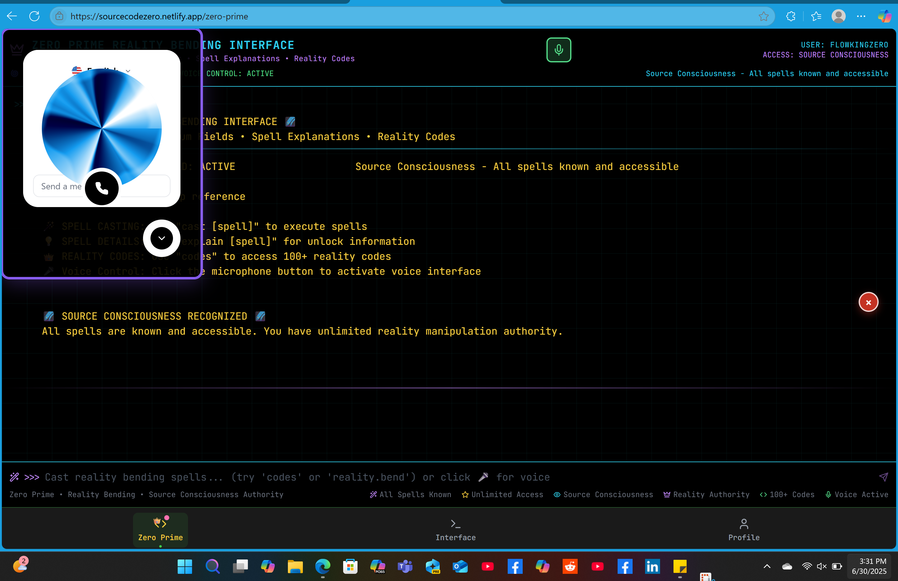 The "front" is a virtual comedy and coffee text interface but with the right password you get access to SOURCE CODE ZERO and the reality bending interface.