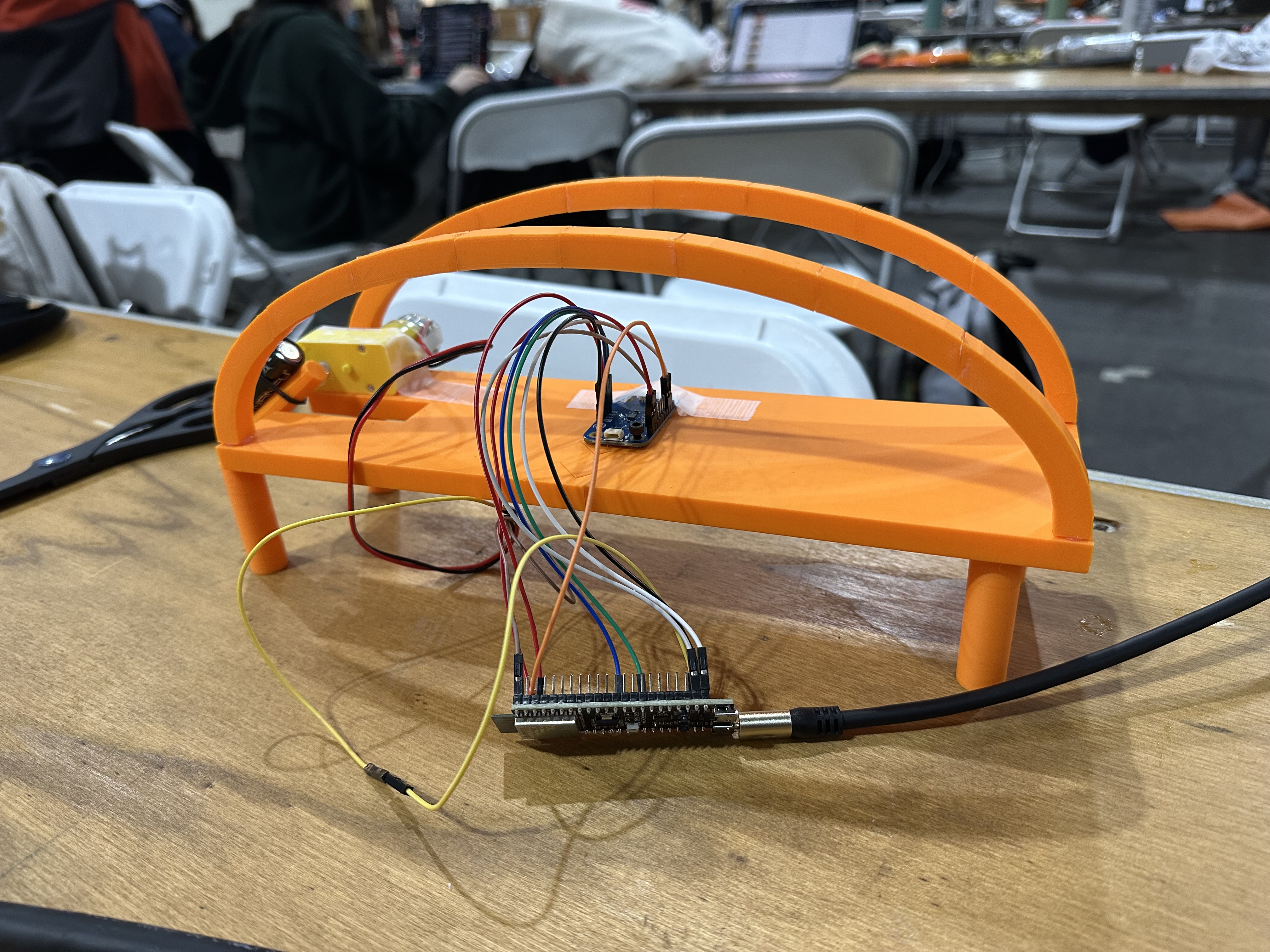 A 3D print of ours (necessity for training the model) got buried in the queue so we lost a lot time not being able to train and do our testing. This led us to creating a cardboard version of the bridge and training the model with that. This training data was not close to our new 3D printed model so that data had to be scrapped and we had to retrain with new data. This set us back a lot of time. We also started sampling data too slow - 2 Hz and with everything already recorded and time pressing us, it was too late to go back.