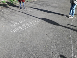 An Fenster / Balkonen stehen – singen / klatschen / tratschen Hausflur-Musik organisieren (Haustüren öffnen und im Hausflur Singen/Musizieren, Songtexte vorher verteilen) Donsentelefone Korb-Seilbahnen Briefe schicken / Briefe verteilen, selbst in die Briefkästen der Nachbarschafts-Empfänger*innen werfen in Verbindung mit einem Spaziergang An der Strasse stehen und jemandem am Fenster / Balkon begegnen Gemeinsam mit Walkie-Talkie und Abstand spazieren gehen Zettel mit Nachbarschaftshilfe anbieten Spielerische Ansätze der Begegnung unter neuen, sozialen Regeln wie z.B. mein Playtest „Weg-Gespräche / Let’s Talk“ => post-digitale soziale Intervention: Vom virtuellen Meeting zum analogen Chatroom auf die Strasse.