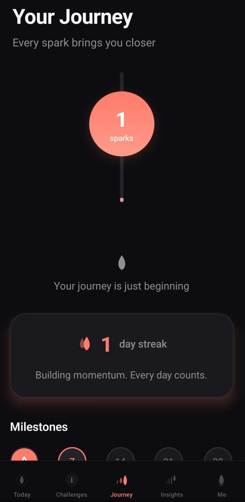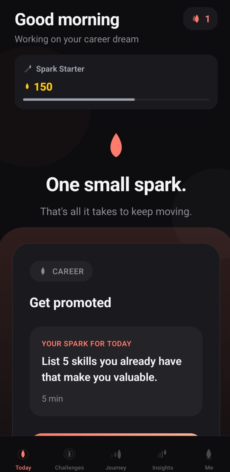 Spark transforms big life goals into a structured 30-day journey of 5-minute micro-actions.