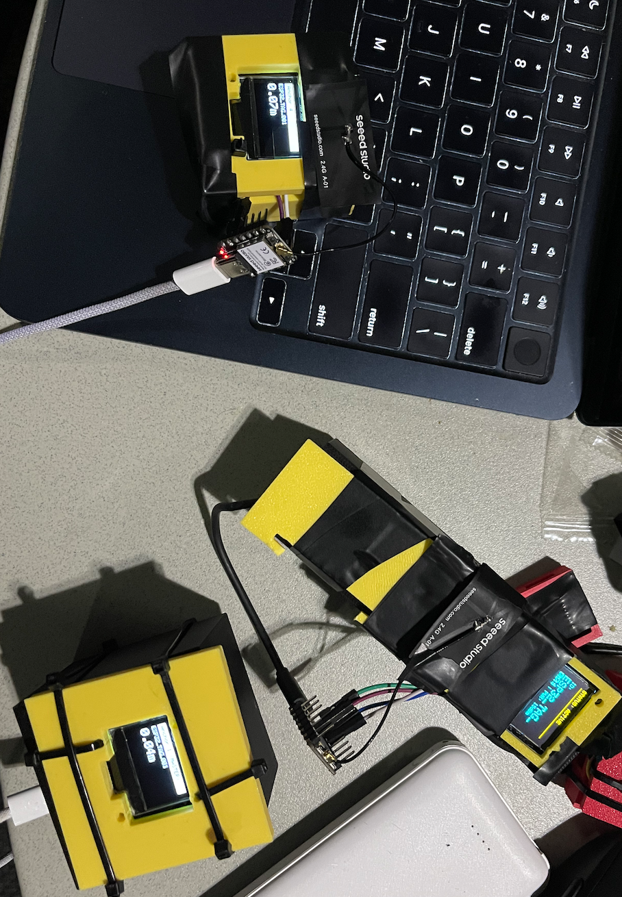 We used multiple xiao esp-32 c3 to allow for Wifi communication and the ability to connect to i2c sensors. Sensors we used included NFC tags, mini-antennas, and gyro sensors. On top of this we used a mini-LCD screen to display data. For our 4 anchors we used a single esp paired with a screen to capture the distance using Wifi, and transmit that data to our screen and wirelessly transmit that data to our mother anchor. Using the distance from all 4 anchors we were able to find the 3d position of our tag. For our tag we had an active tag that included a esp, mini antenna, gyro, and NFC tag to have accurate real time location tracking plus the ability to store data, and display any necessary information on the screen. We also had a passive tag which was able to be much smaller which only included a esp and a screen. To make the cases we used Onshape and 3d modeled the cases before 3d printing them. All electronics were soldered and made in-house and went through lots of problems and smoke before working.