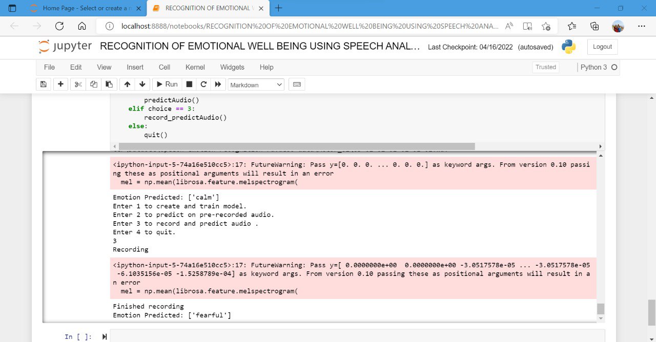 Datasets are recorded in silent labs but in real time the voice recorded seems to be noisy. Accuracy is generally affected by extraction and selection of efficient feature Getting the accurate emotion from a voice was a challenging task.