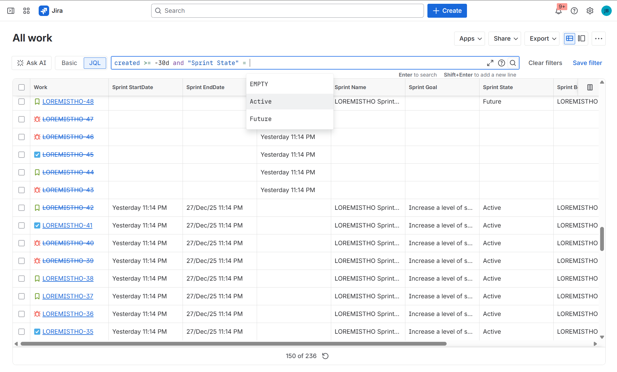 For many years, Jira Cloud users have been asking Atlassian for native support to query issues by sprint characteristics such as sprint dates, state, goal, or board context. Two long-running public tickets clearly illustrate this demand: