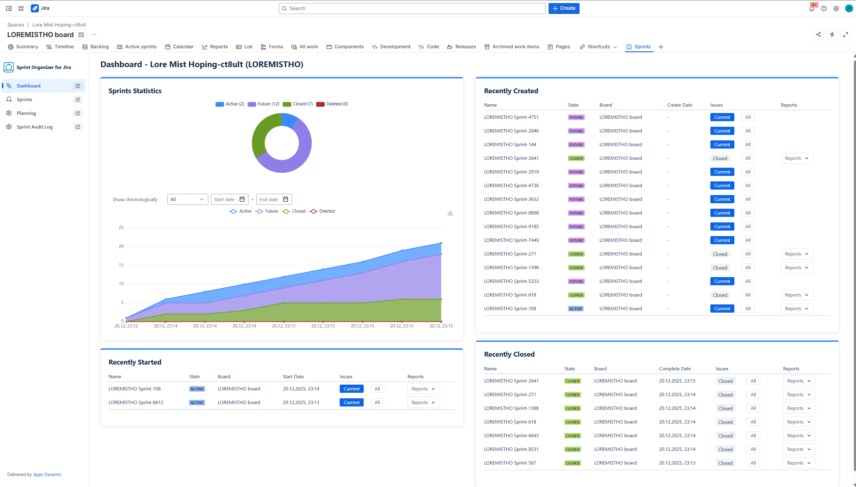 On top of exposed sprint data, Sprint Organizer provides real-time visibility into sprint lifecycles: