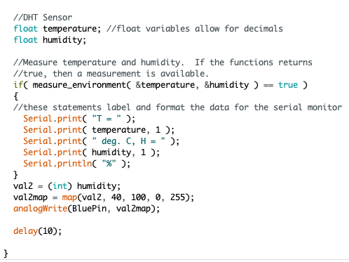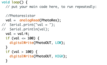We learned about logic, such as what-if statements. Another useful skill we picked up was mapping. The inputs from the sensors was outside of the 0-255 range the LED light accepted. For this reason we had to map the input values into this range and it worked very well!