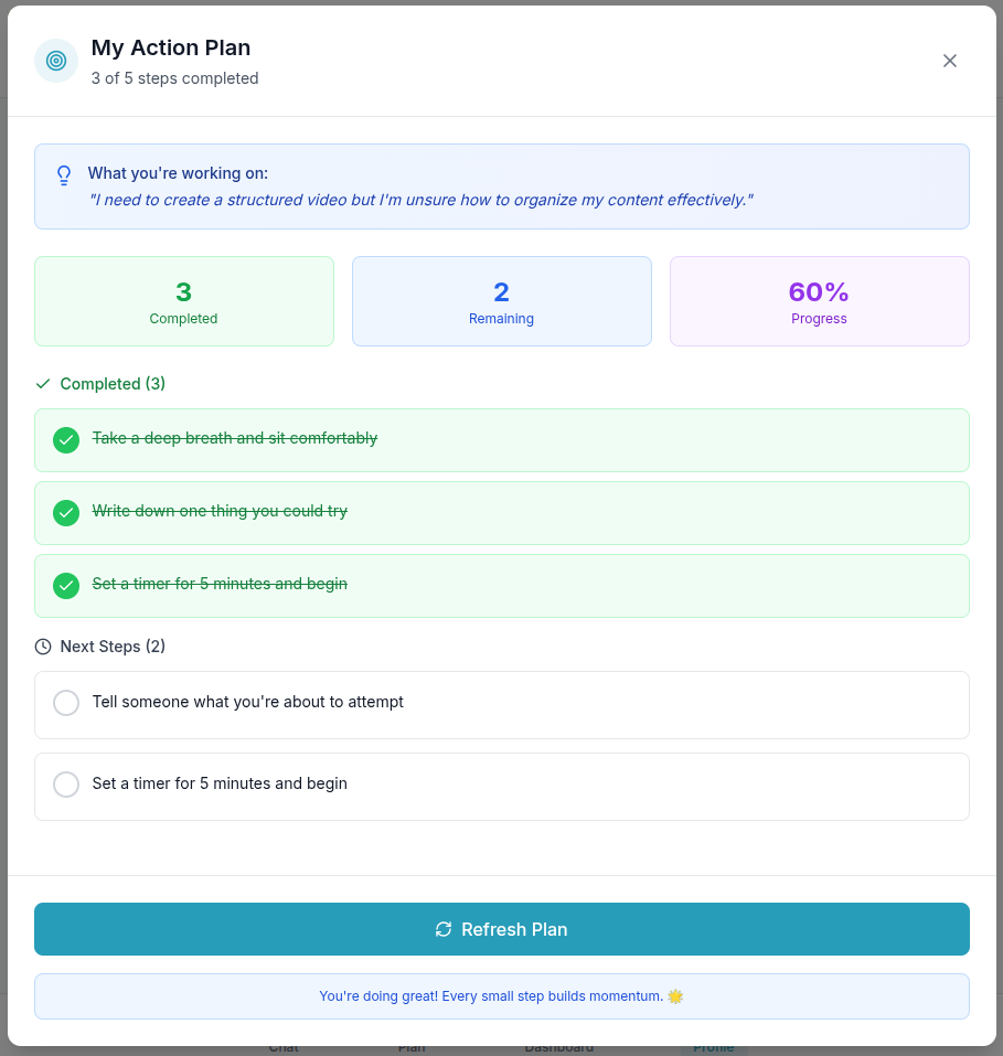 Empathy → Clarity → Momentum - Generating 5-minute micro-steps to get started