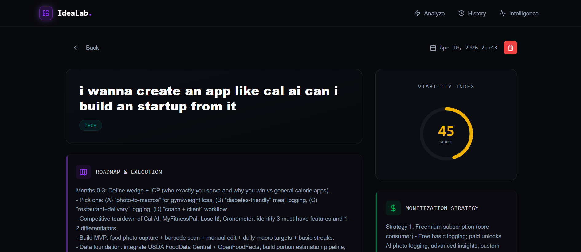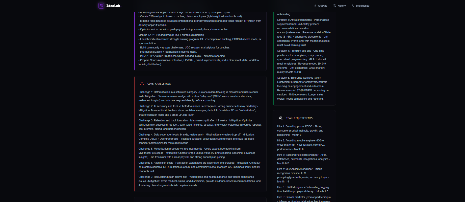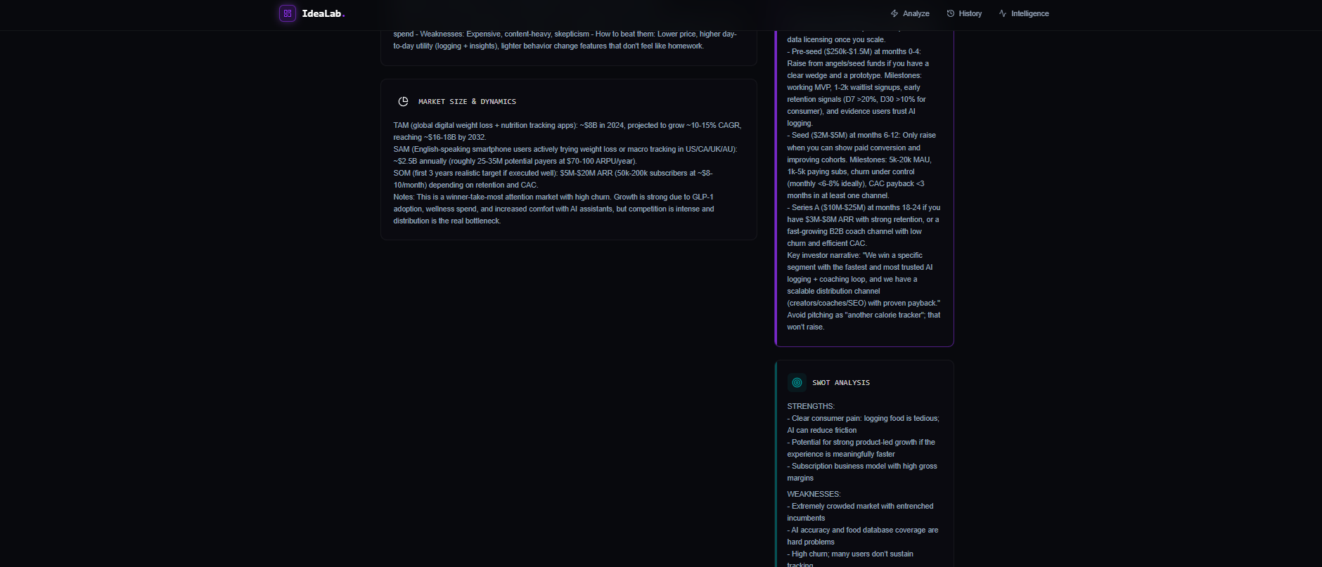 It takes the idea as an input and provide the brief path , what are challenges , pros , competitions.