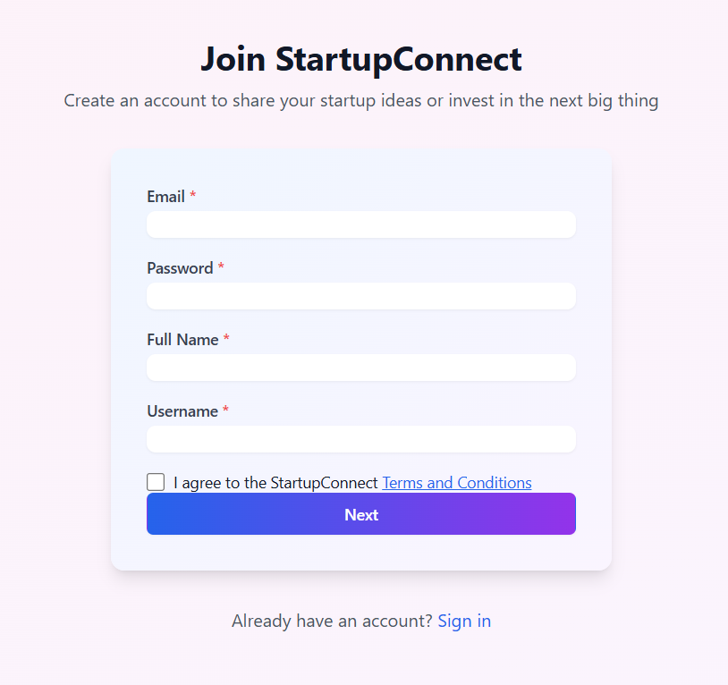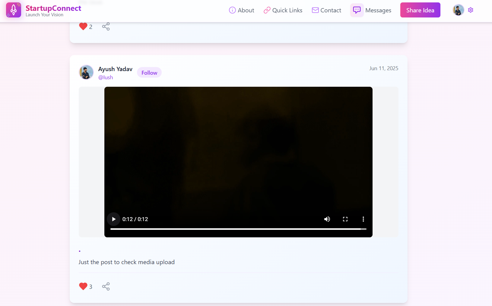 Live Site: https://mystartupconnect.vercel.app/ GitHub Repo: https://github.com/Iush-Yadav/StartupConnect