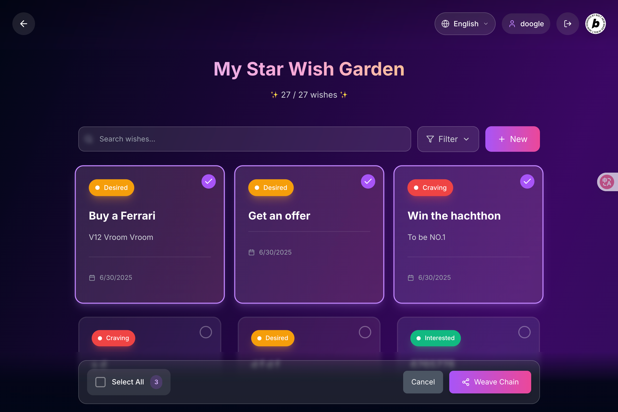 Select wishcards to weave starchain.