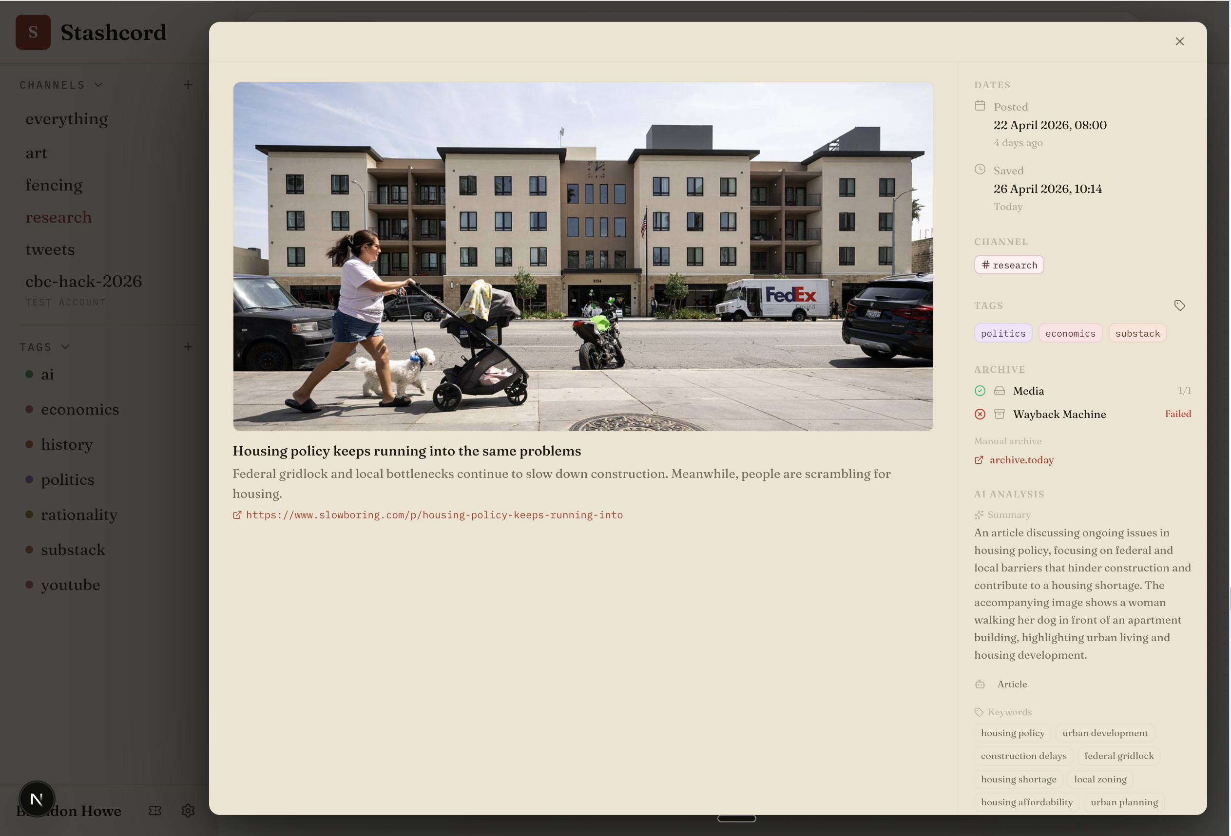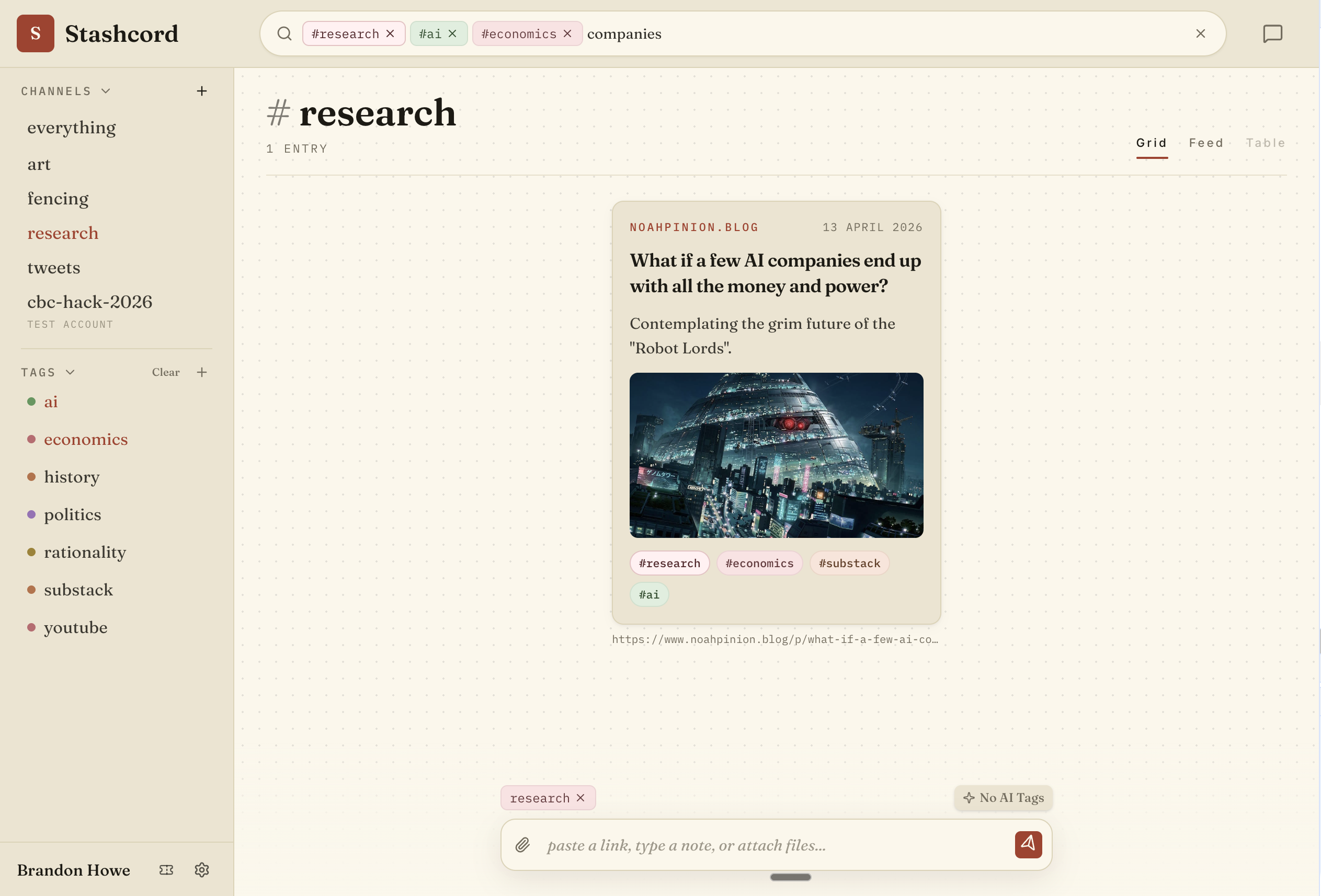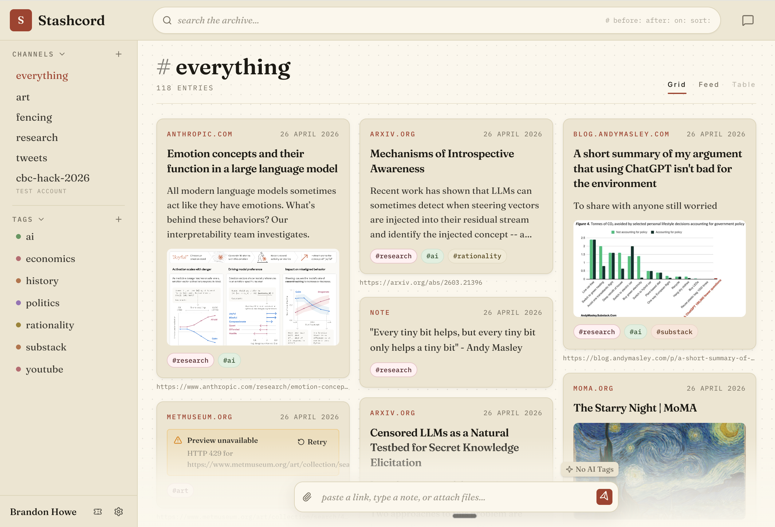In an internet dominated with slop, curation and preserving quality work is increasingly important. Stashcord uses AI as a tool for humans, not a replacement for meaningful work.