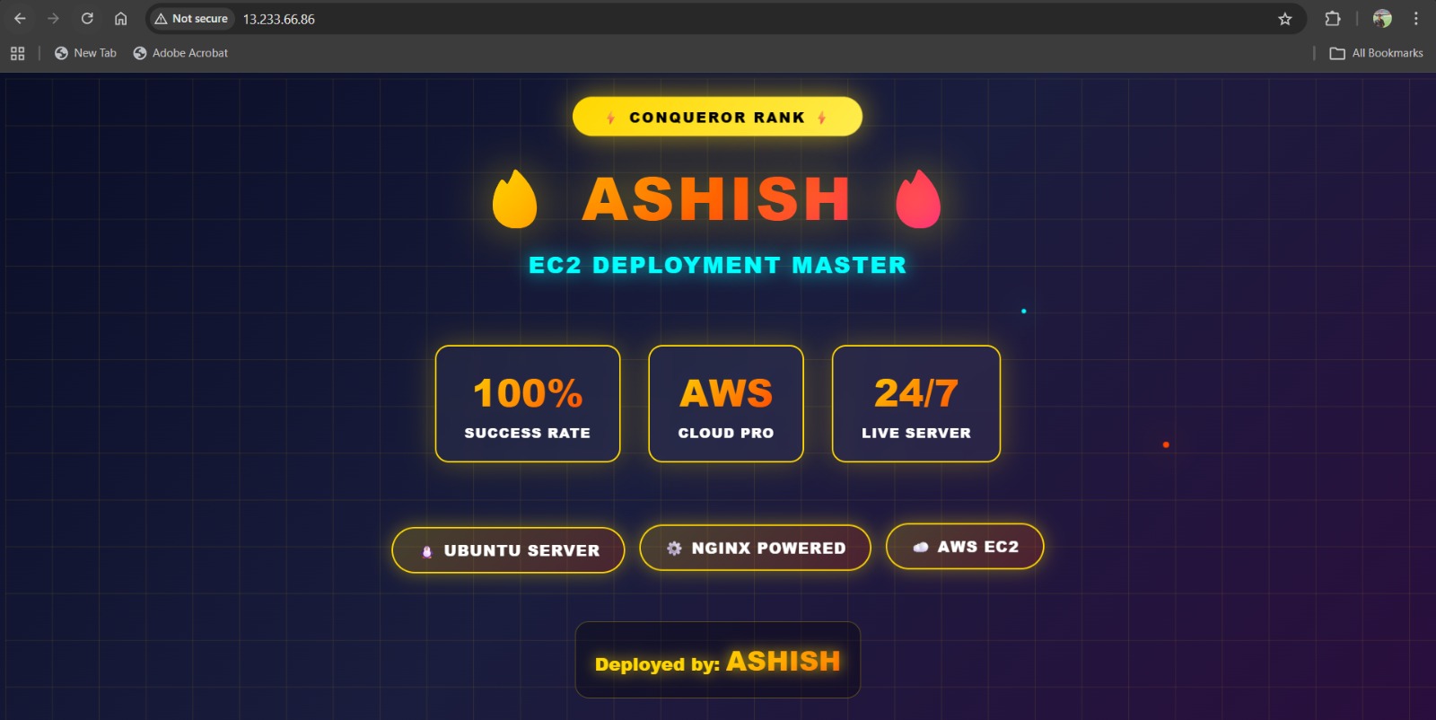 In this project, I created a responsive web design and deployed it on an AWS EC2 instance. The website was developed using HTML, CSS, and basic frontend concepts, and then hosted on a Linux-based EC2 virtual machine. The goal was to make the website publicly accessible through the internet using a public IP address.