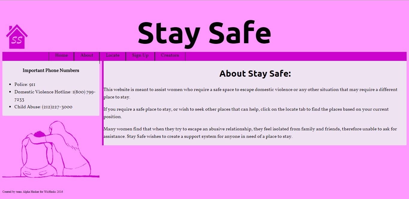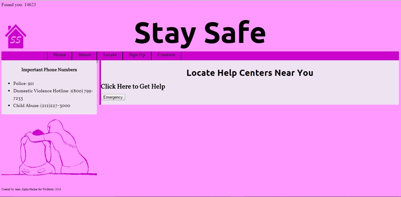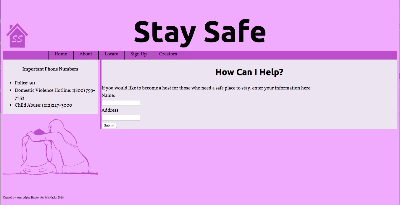 We plan to add a volunteer network to Stay Safe, allowing people to sign up to shelter people escaping abusive relationships. Additionally, an automatic 'help' text to be sent to a predetermined number.
