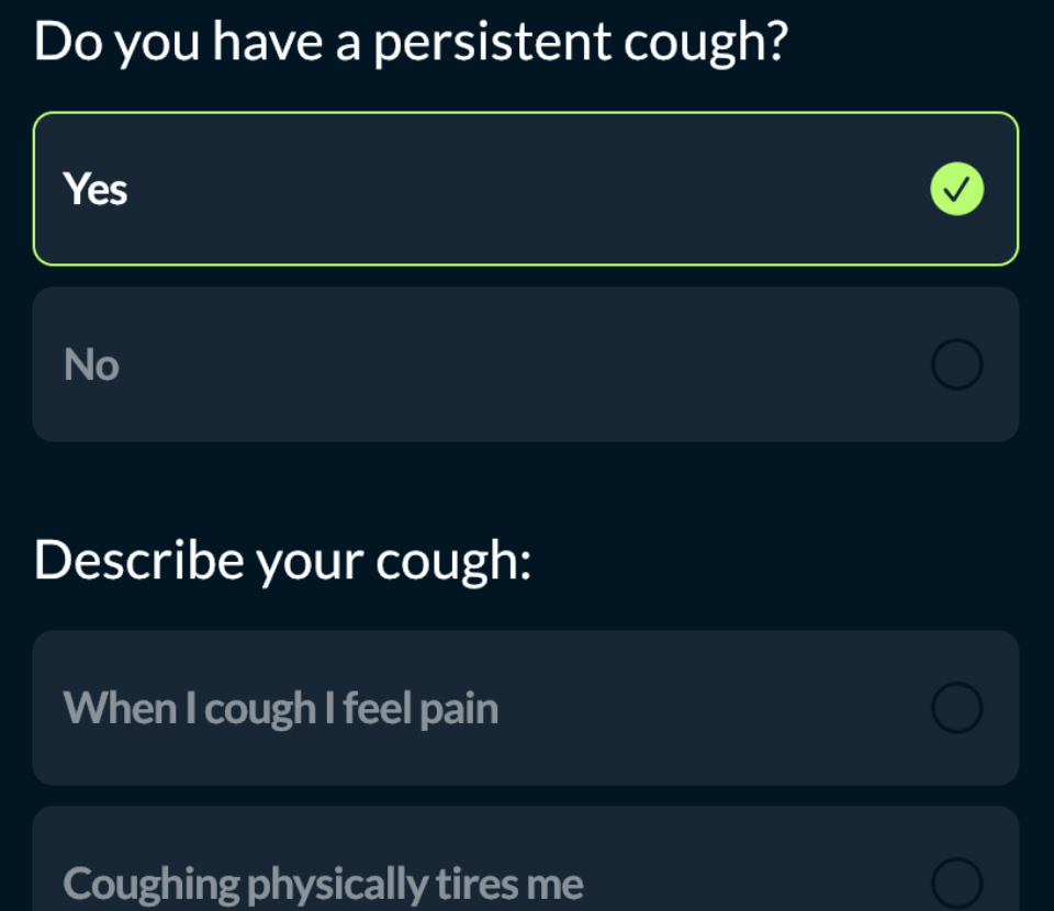 Based on a patient's answer our Smart Assessments modify themselves with follow up questions