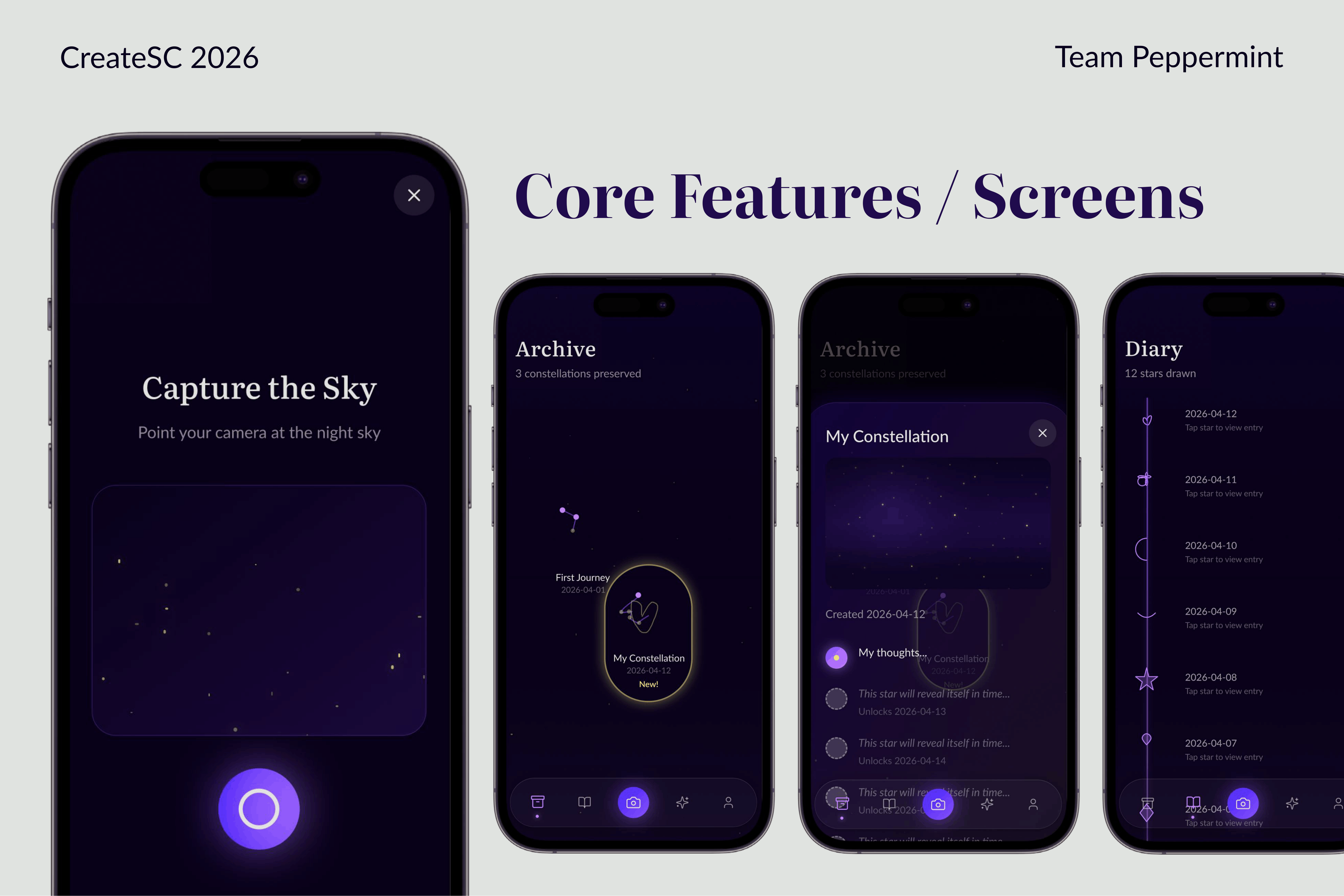 Next, we plan to further refine the UI and expand the range of interactions within the app. This includes developing more ways for users to explore each other’s archives and night skies, and allowing users to visually see the captured moments and journal entries fading away. We also hope to make this app not only connect strangers but also reach nearby friends and family members in order to emphasize the importance of those closest to us.