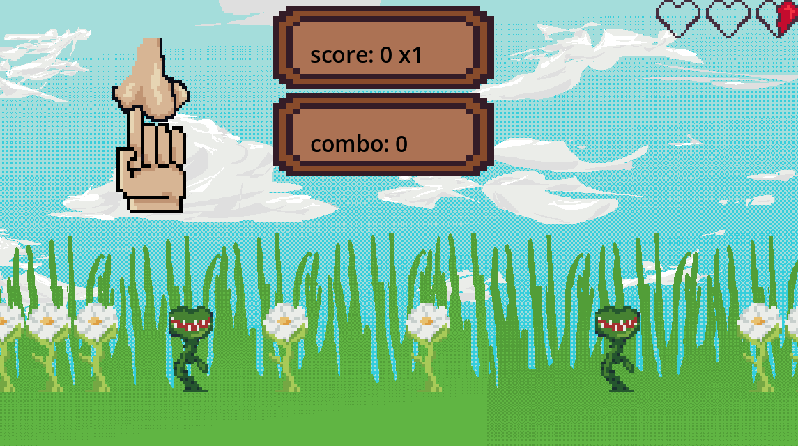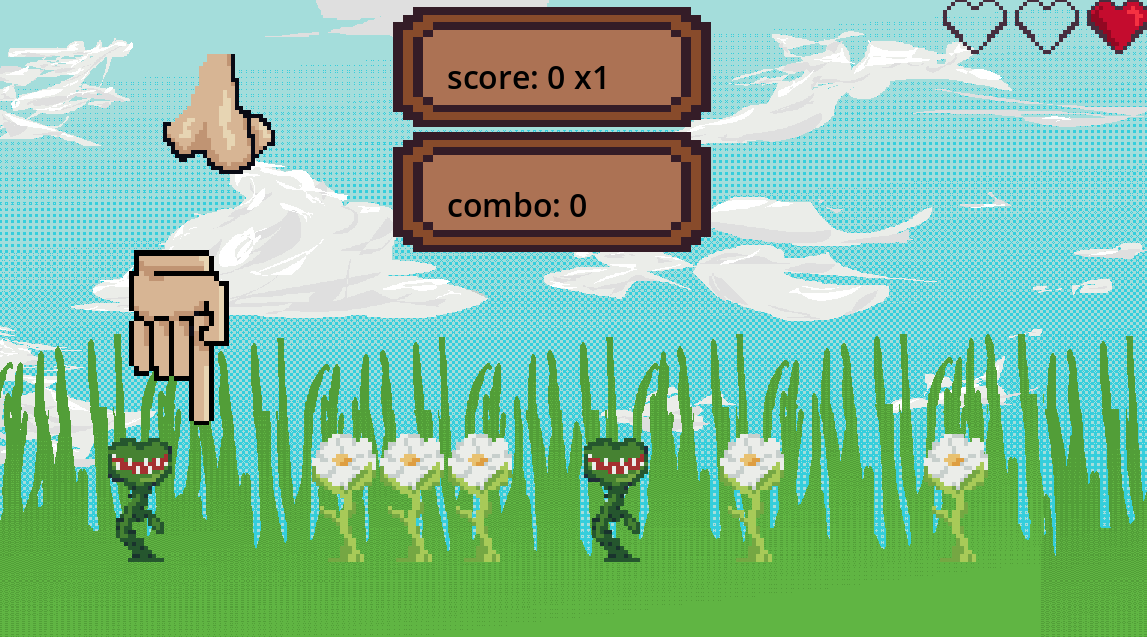 You have to touch the pretty flowers with the space bar while avoiding the dangerous plants. Then you need to pick your nose once it gets blocked to stop your score from not being multiplied. Make sure to keep in time with the rythm!