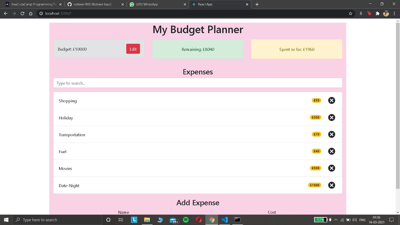 store expenses Inspiration React app for budget expenses and storing data What it does Stores data and calculates a budget for you Built With html5reactsass Try it out github.com