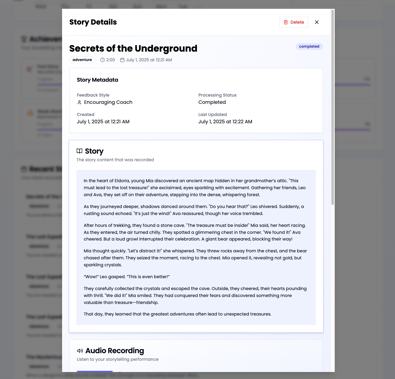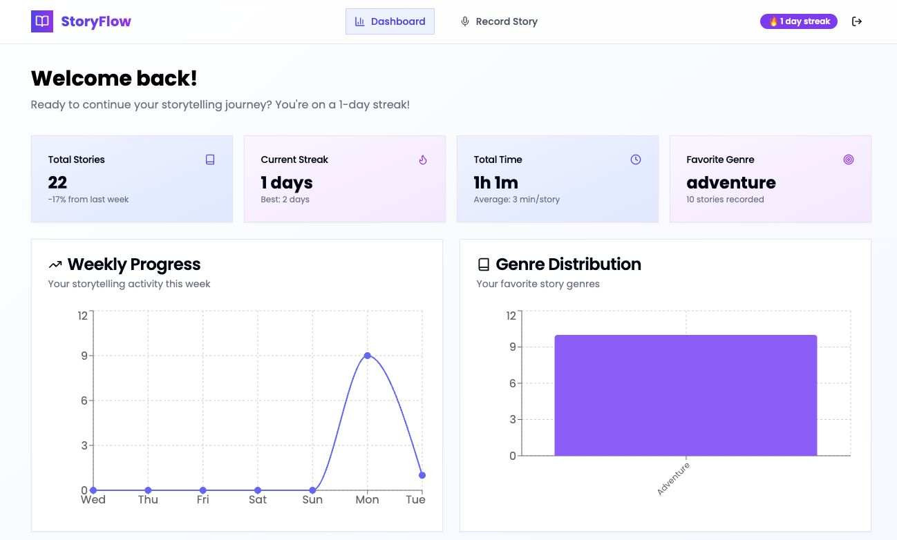 - User-Centric Design: Built a platform that addresses the core issue of consistent, accessible storytelling practice