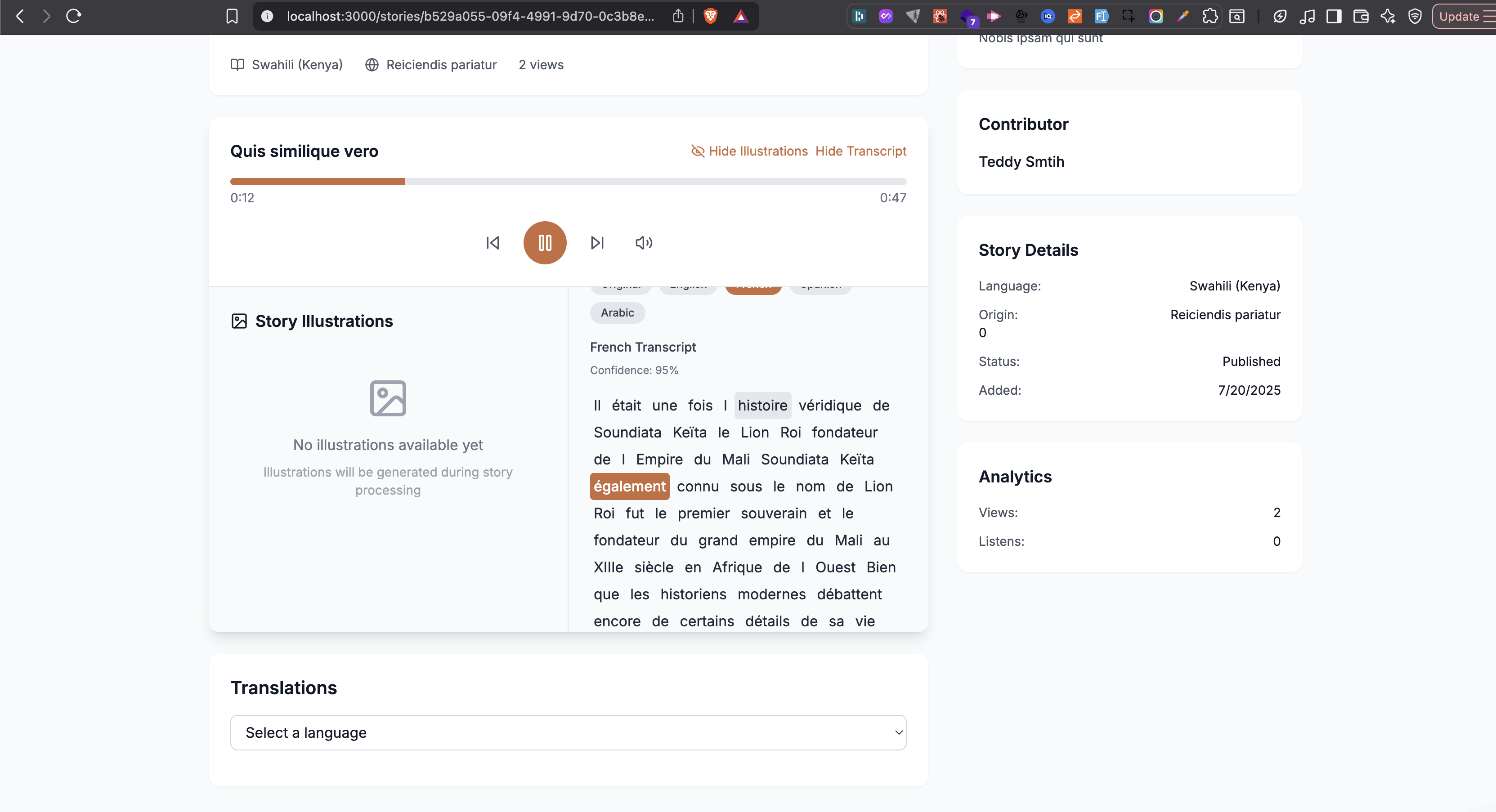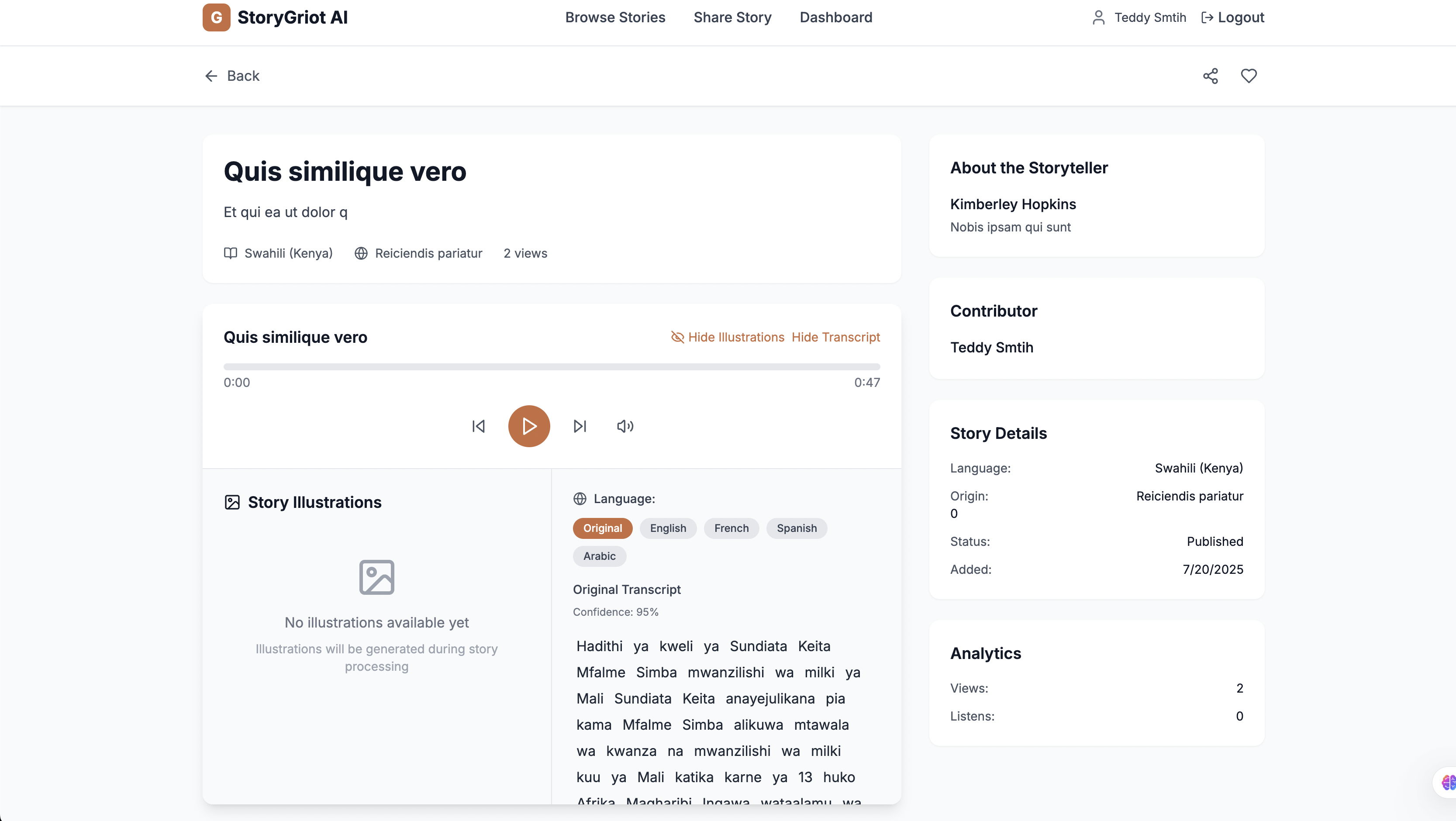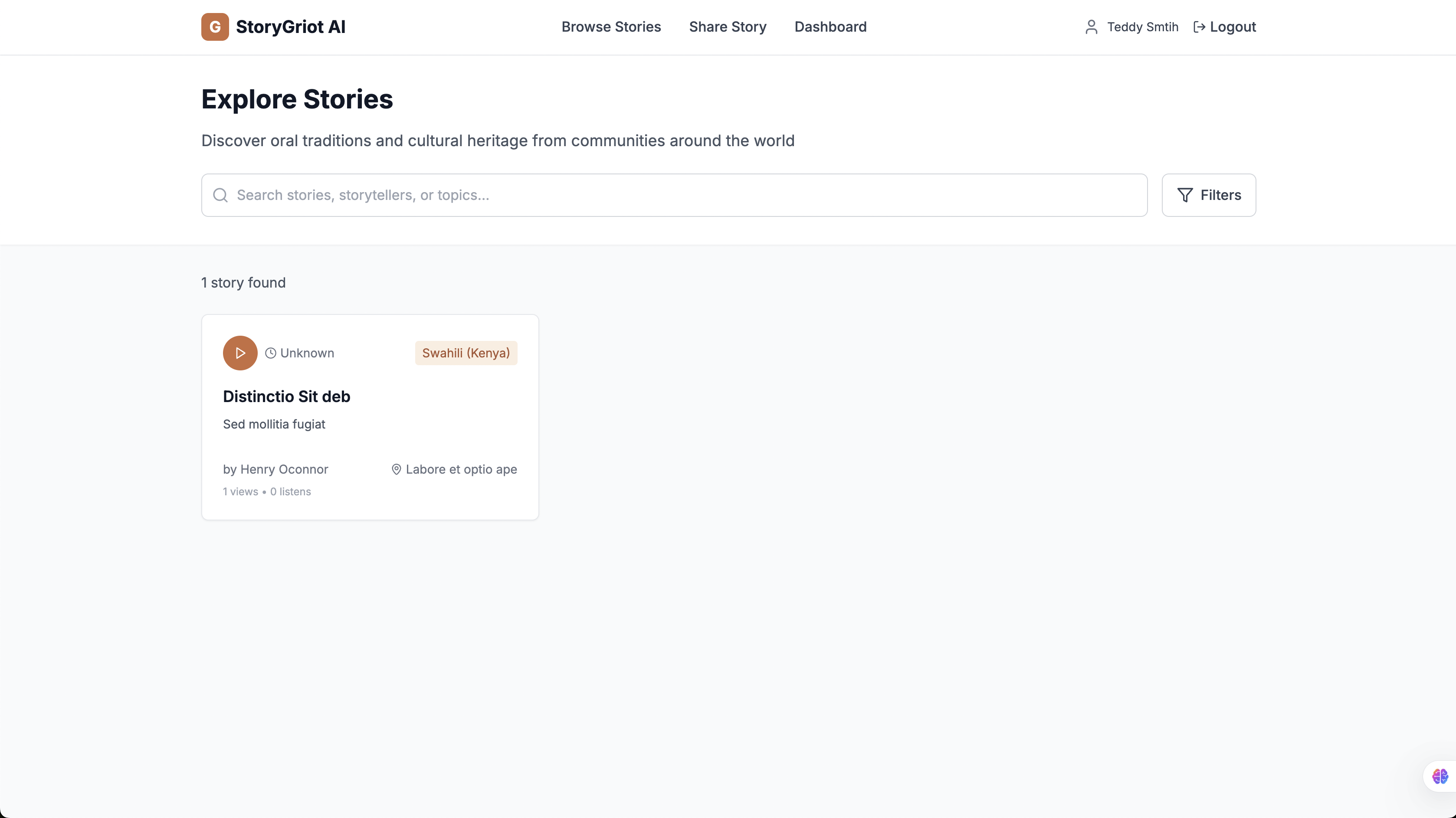 - Analytics Dashboard: Comprehensive analytics for storytellers and cultural organizations