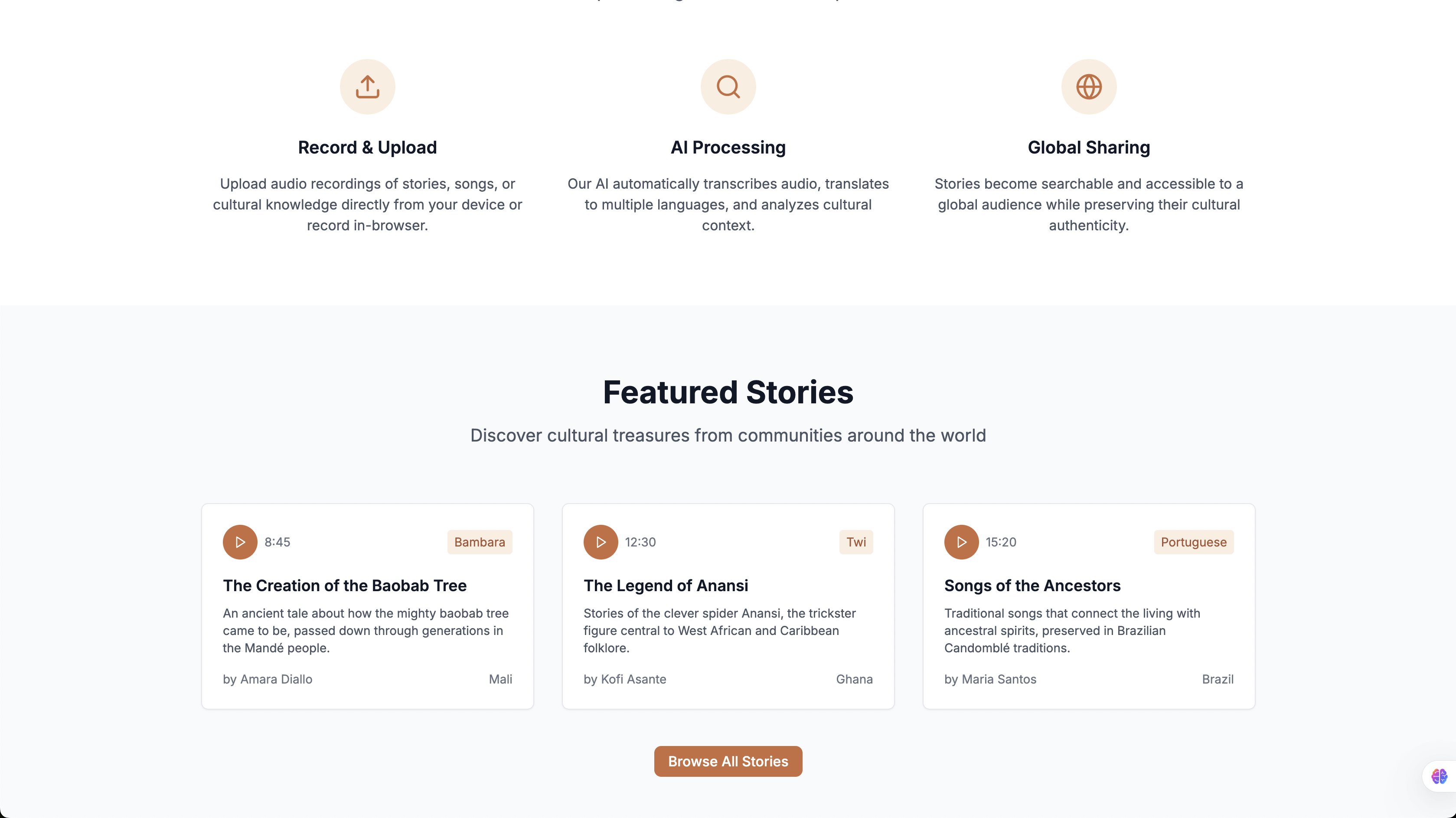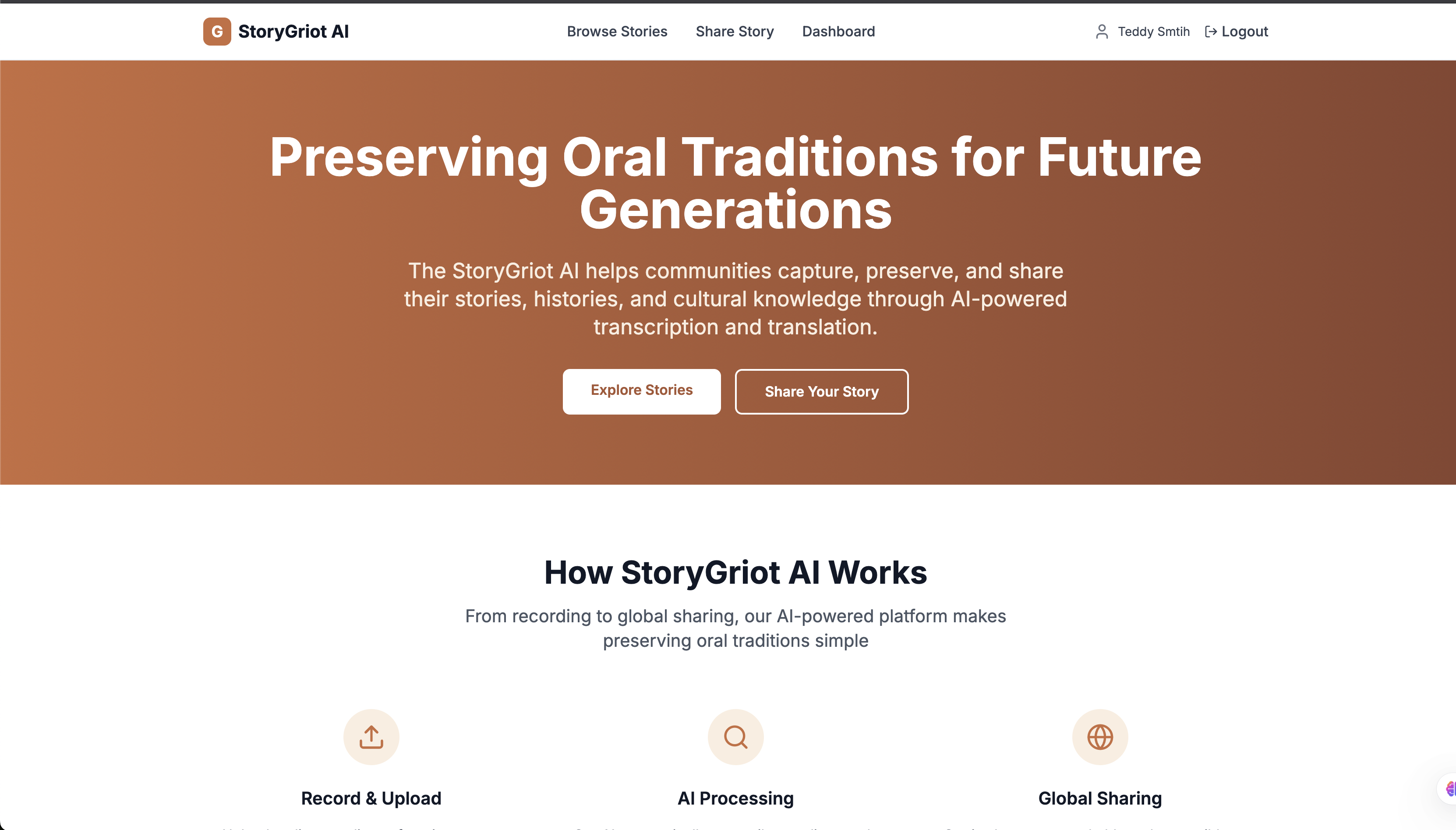 We were particularly inspired by the West African griot tradition - master storytellers who preserved history, culture, and wisdom through oral narratives. In today's digital age, we saw an opportunity to combine this ancient tradition with cutting-edge AI technology to create a platform that could preserve these stories for future generations while making them accessible to a global audience.
