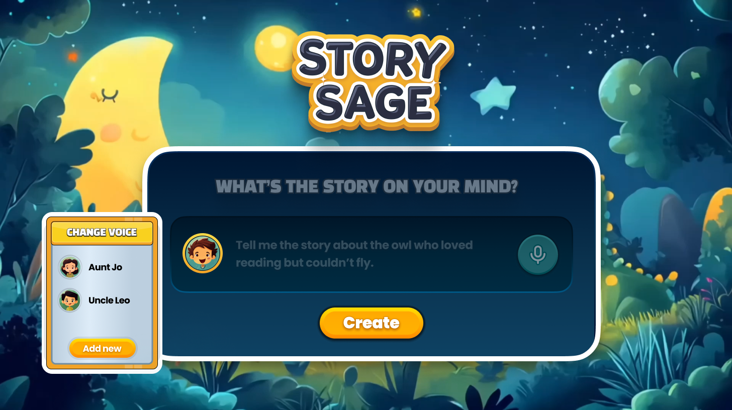 StorySage was created to bring personalized, AI-generated stories to children—anytime, in the voices they love.