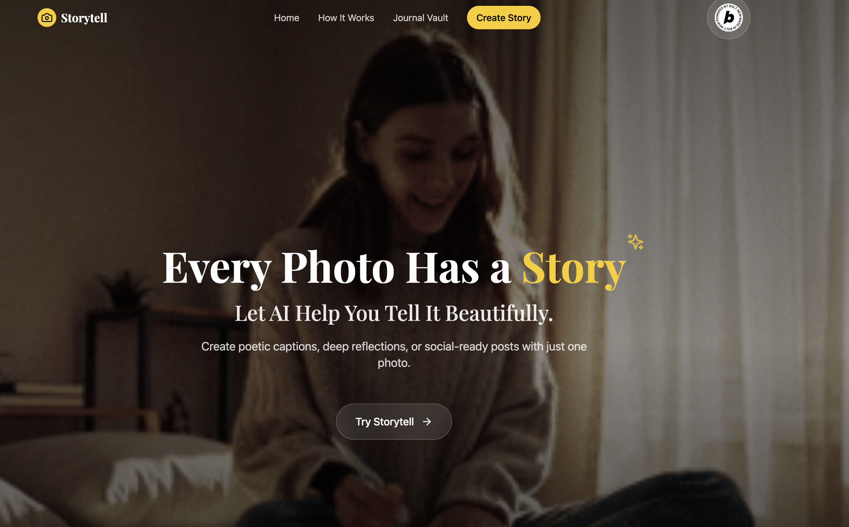 Storytell is an AI-powered tool that turns any uploaded photo into thoughtful, ready-to-use copy. Users simply add a photo, select a tone and format, and the app generates tailored content — whether it's an Instagram caption, a private journal entry, a poetic reflection, or even a heartfelt letter.