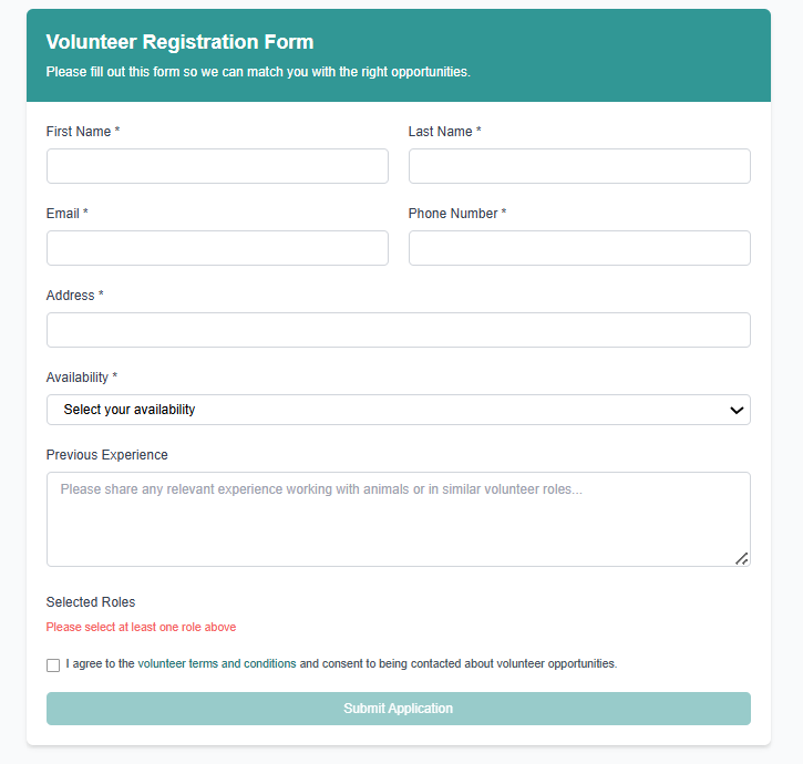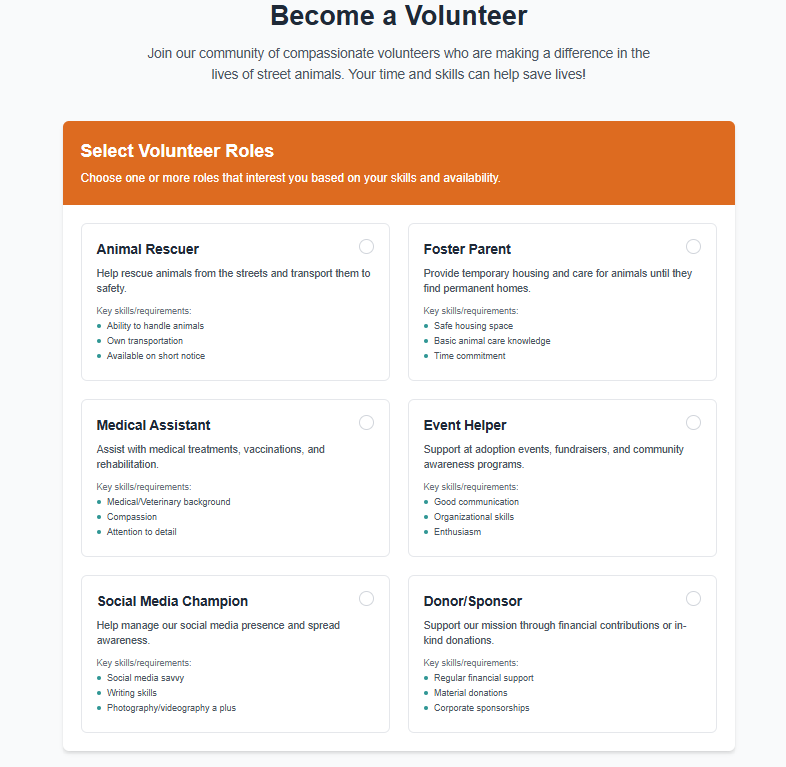- 🫂 Enables volunteer sign-ups to assist with rescues or fostering.