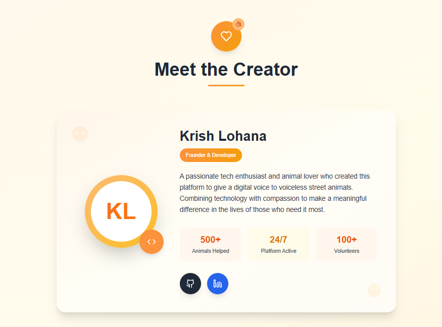 Walking through my city, I often saw street dogs injured, starving, or being mistreated. While cats generally receive affection, dogs are frequently feared or chased away. I realized that although rescue teams exist, there was no simple way for the public to report these animals or connect with organizations.