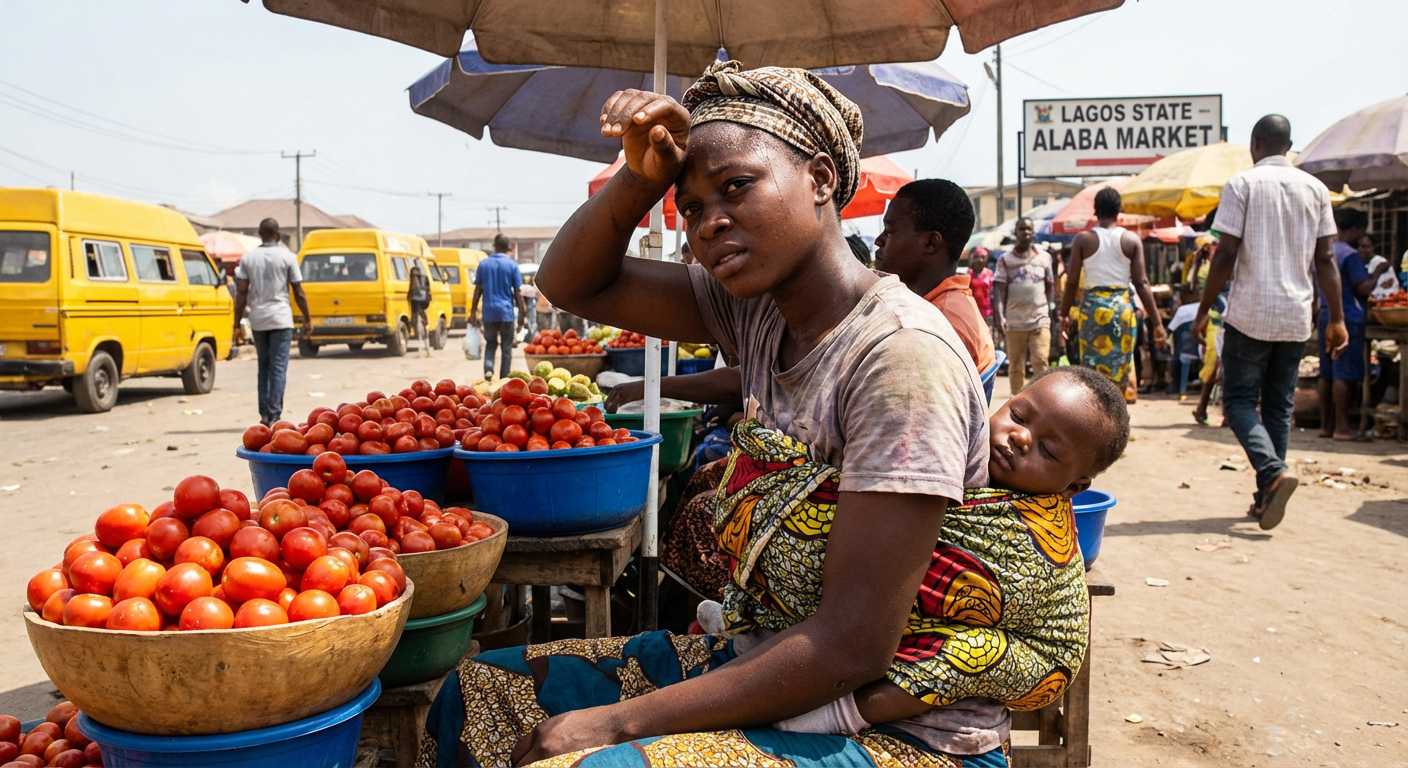 Meet Mama Amina: She sells tomatoes in Lagos, Nigeria. With no credit history and no bank account, she can't prove creditworthiness despite ₦1,500 in consistent daily sales. She pays ₦200/kg for tomatoes when wholesale is ₦148, a 35% markup. Her transactions leave no digital footprint, locking her out of formal finance.