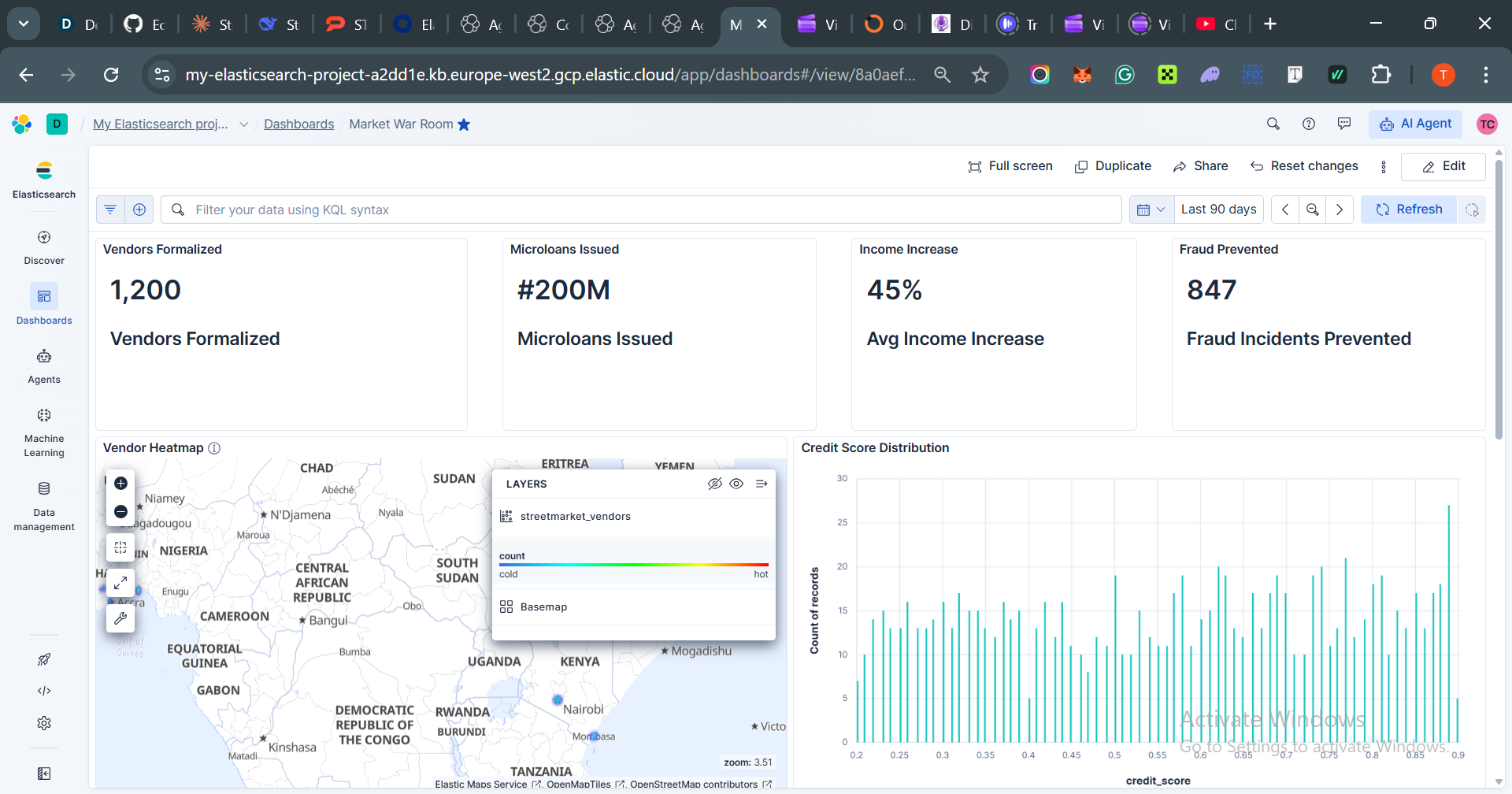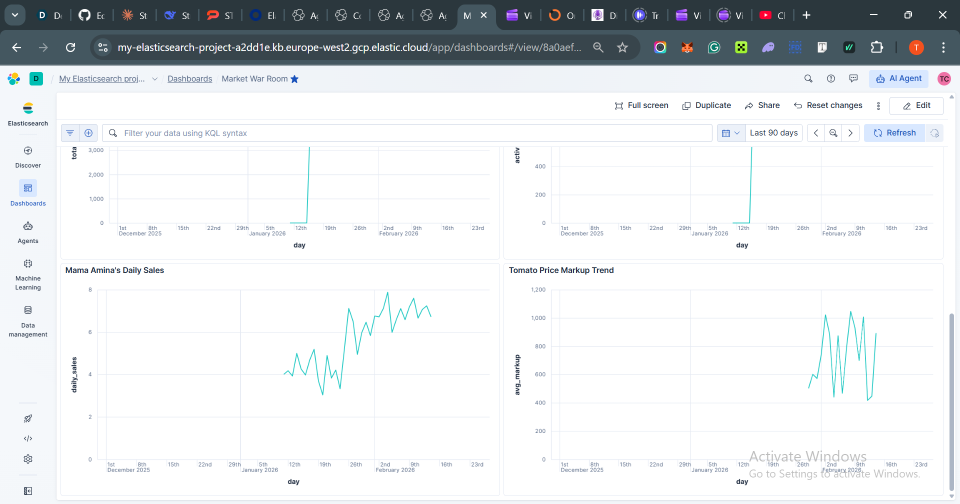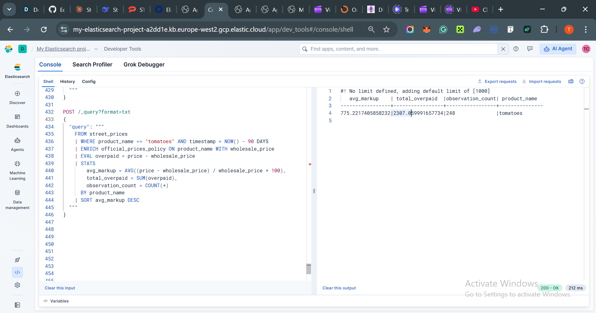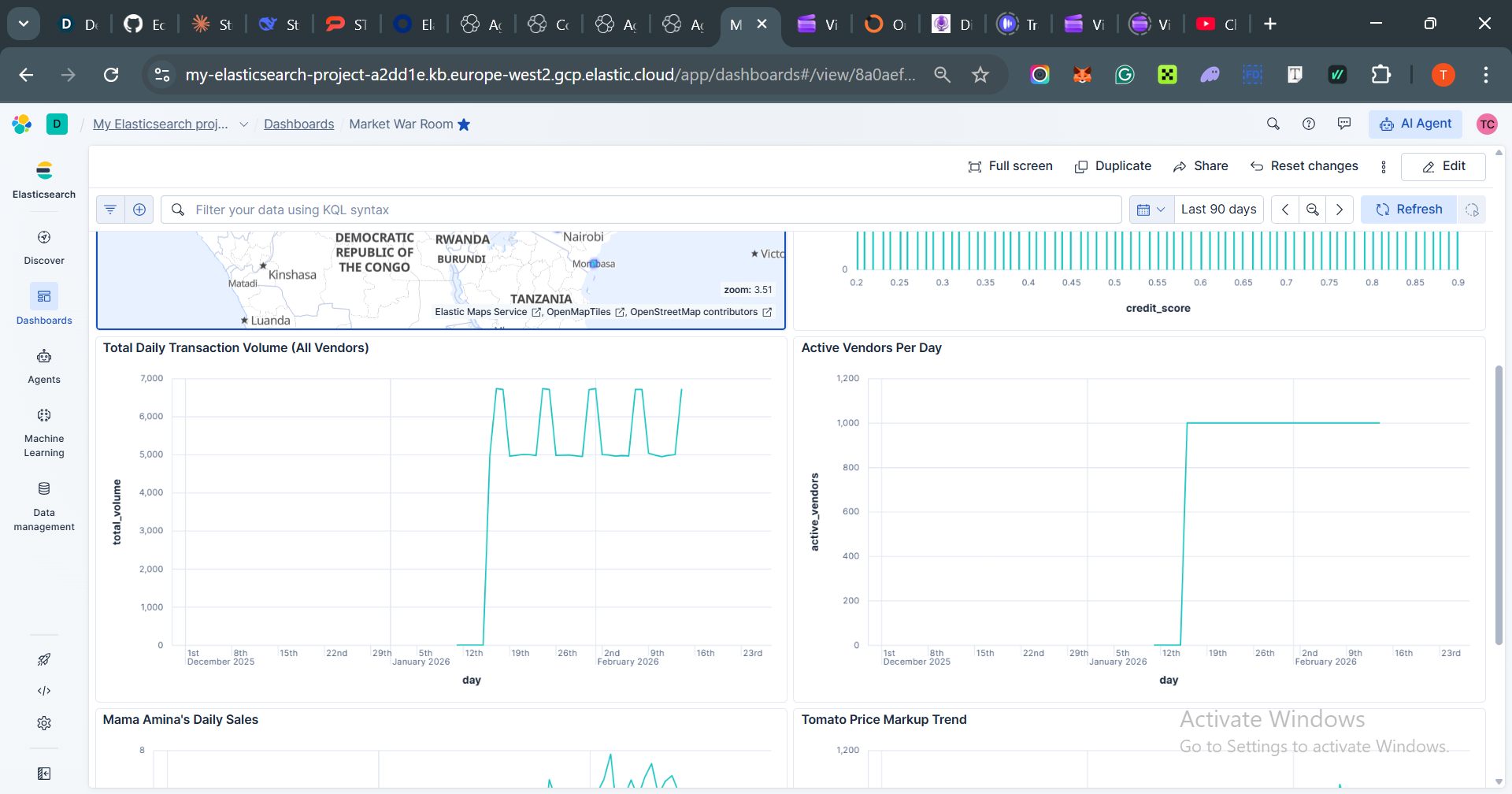 ES|QL ENRICH joins street_prices with official_prices in a single query with sub-100ms latency. One query revealed ₦2,300 in collective vendor overpayments over 90 days—instantly alerting them to bulk-buying opportunities.