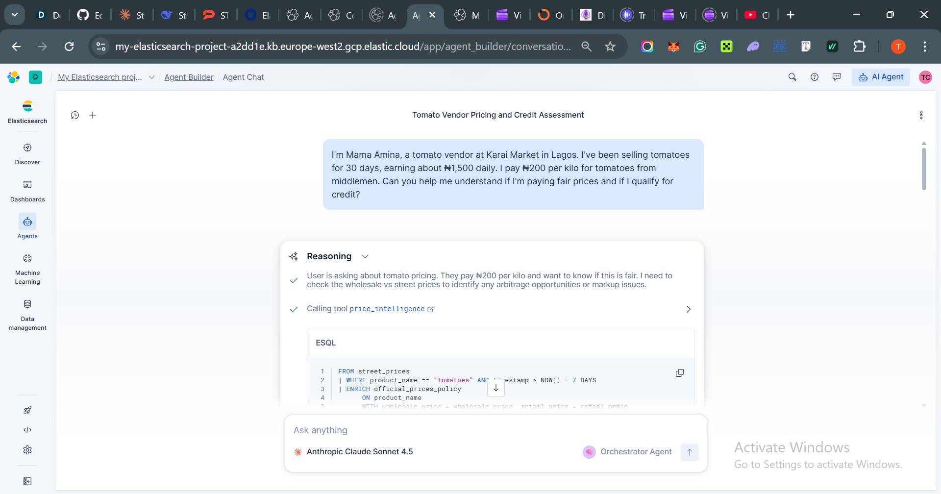 Agent-to-Agent Communication: We initially designed the Orchestrator to call specialized agents directly but discovered Agent Builder doesn't support agent-to-agent calls. Solution: We pivoted to a tool-based architecture where the Orchestrator calls ES|QL tools directly, more efficient with lower latency.