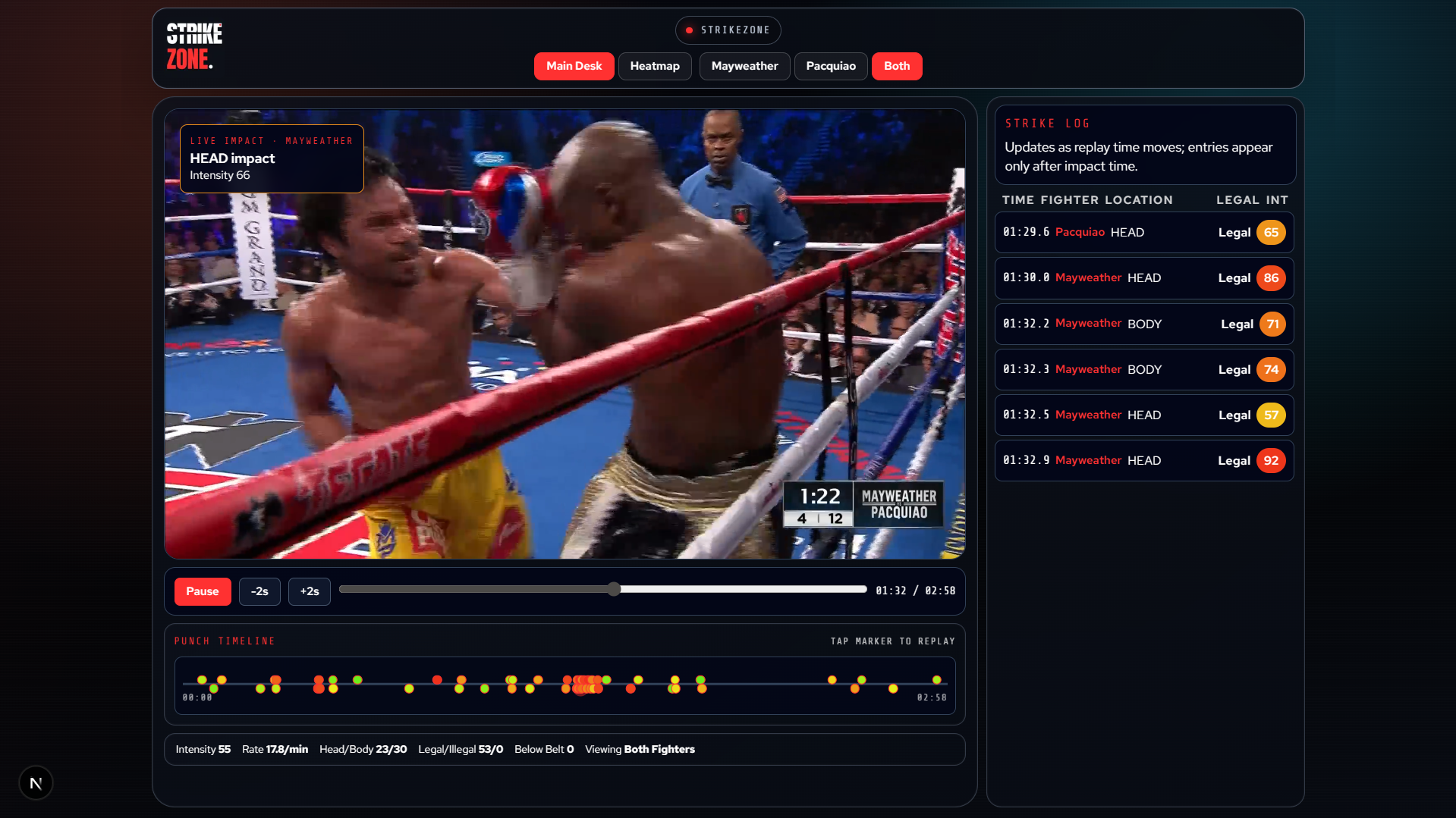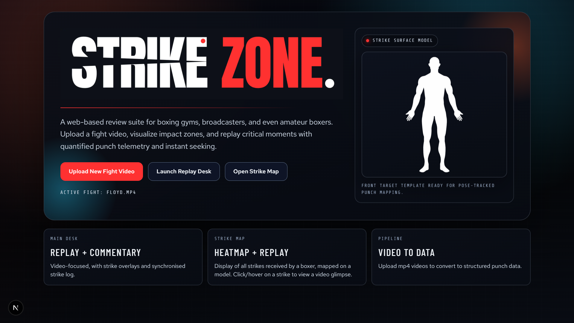 Being fans of other sports, we've seen how they use technology to augment their broadcasts by providing data-backed overlays. Boxing is a fast-growing industry, with recent fights reaching hundreds of millions of viewers as the industry shifts from PPV to streaming. We want to provide the tooling to make fight analysis objective, fast, and visual by turning raw footage into clear strike data. We're targeting not only broadcasters and promoters, but also trainers and boxers inspired to join the sport all over the world.