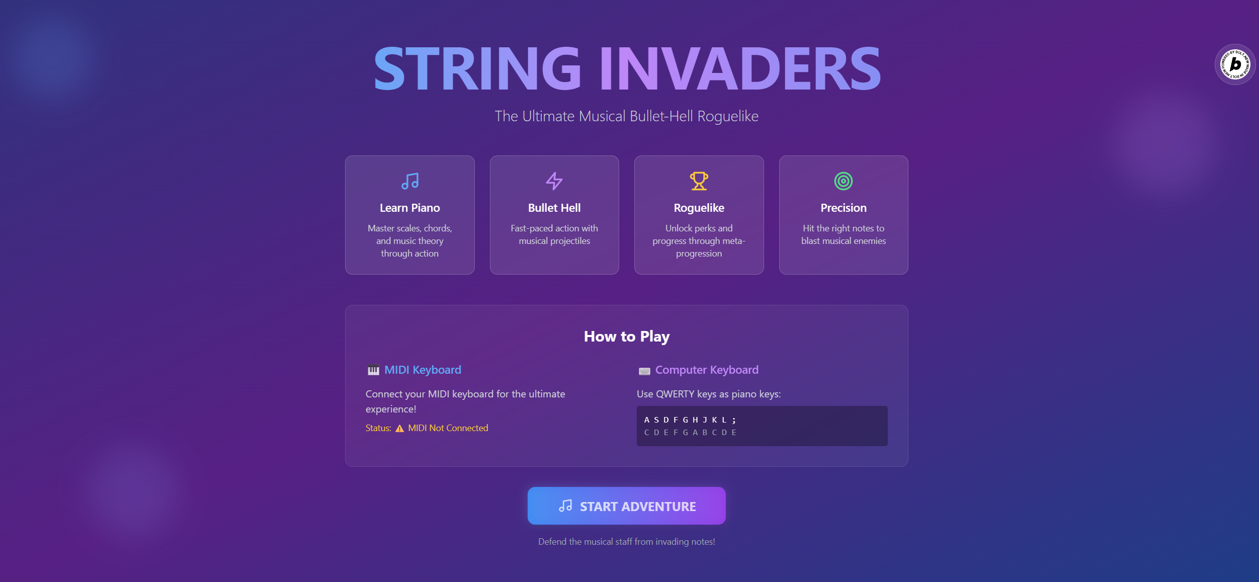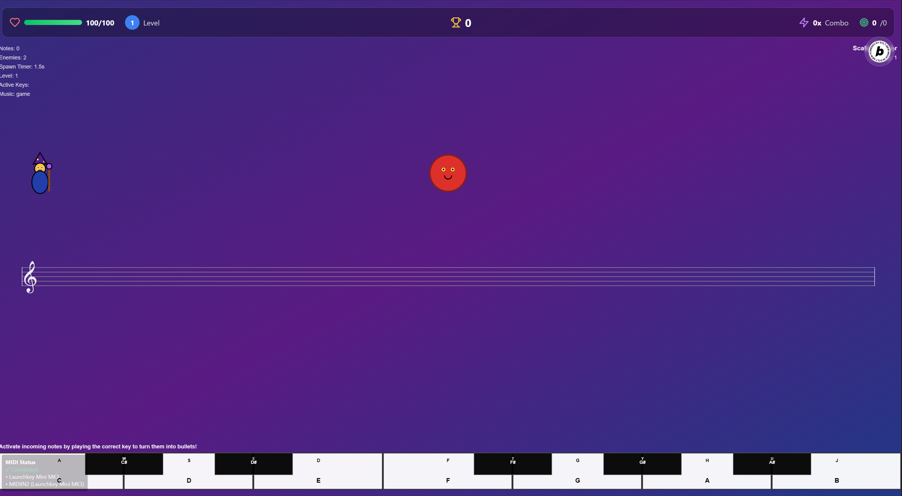 String Invaders is a game where you use musical notes as bullets. Shoot a note by pressing the right key with your MIDI input.