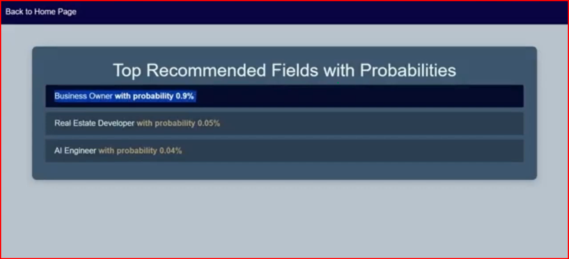 - Feature Engineering: Understood how various academic and behavioral factors impact career recommendations.