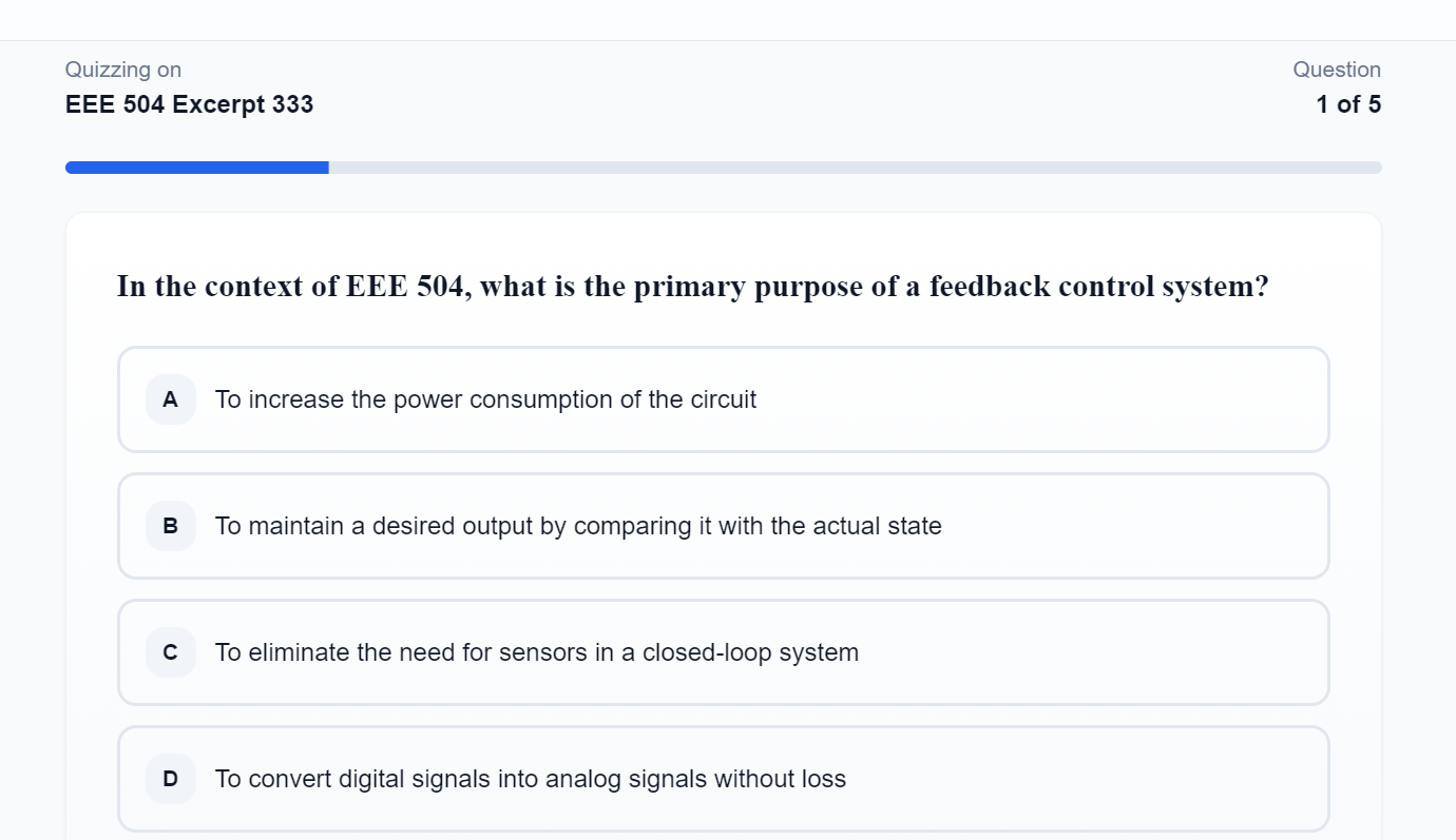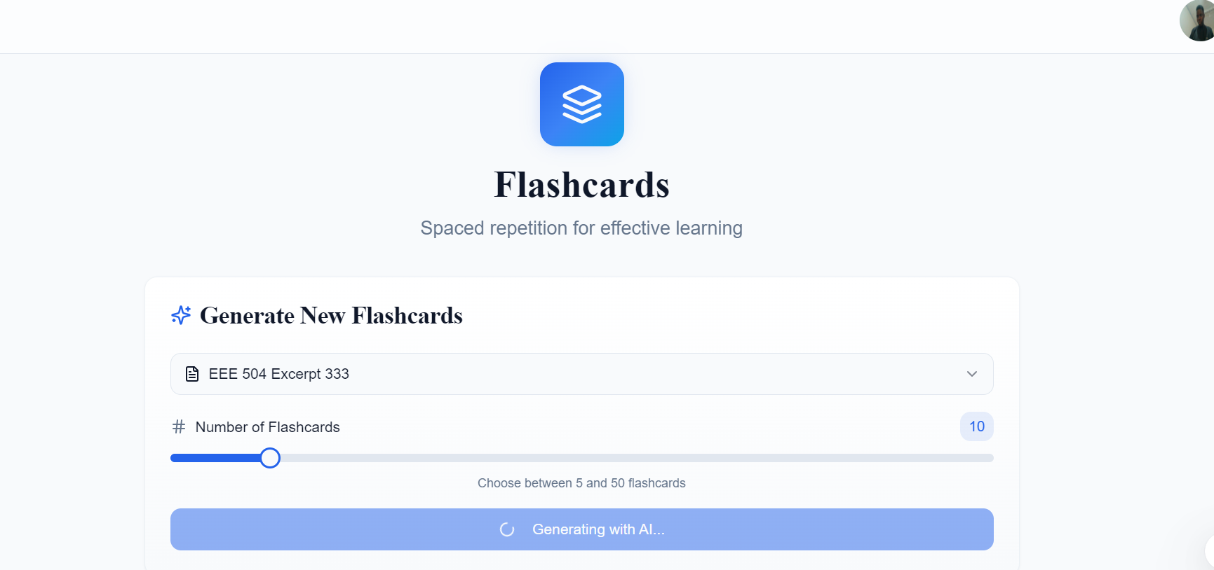 - The Interactive Study Room (RAG Chat): Instead of passively reading a 50-page chapter, a student can upload their specific course PDF and ask, "Explain this concept like I'm 5." The AI acts as a 24/7 personal tutor, answering questions using only the information from that specific document. Crucially, it provides citations (e.g., "[Source: Page 12]"), building trust and ensuring the student learns the exact material required by their professor.