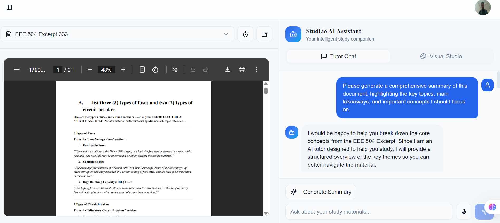 I built Studi.io to be the tool I wished I had back then. I wanted to take those terrifying, bulky PDFs and turn them into something friendly, interactive, and conquerable. I wanted to prove that with the right support, any student can master the material honestly.