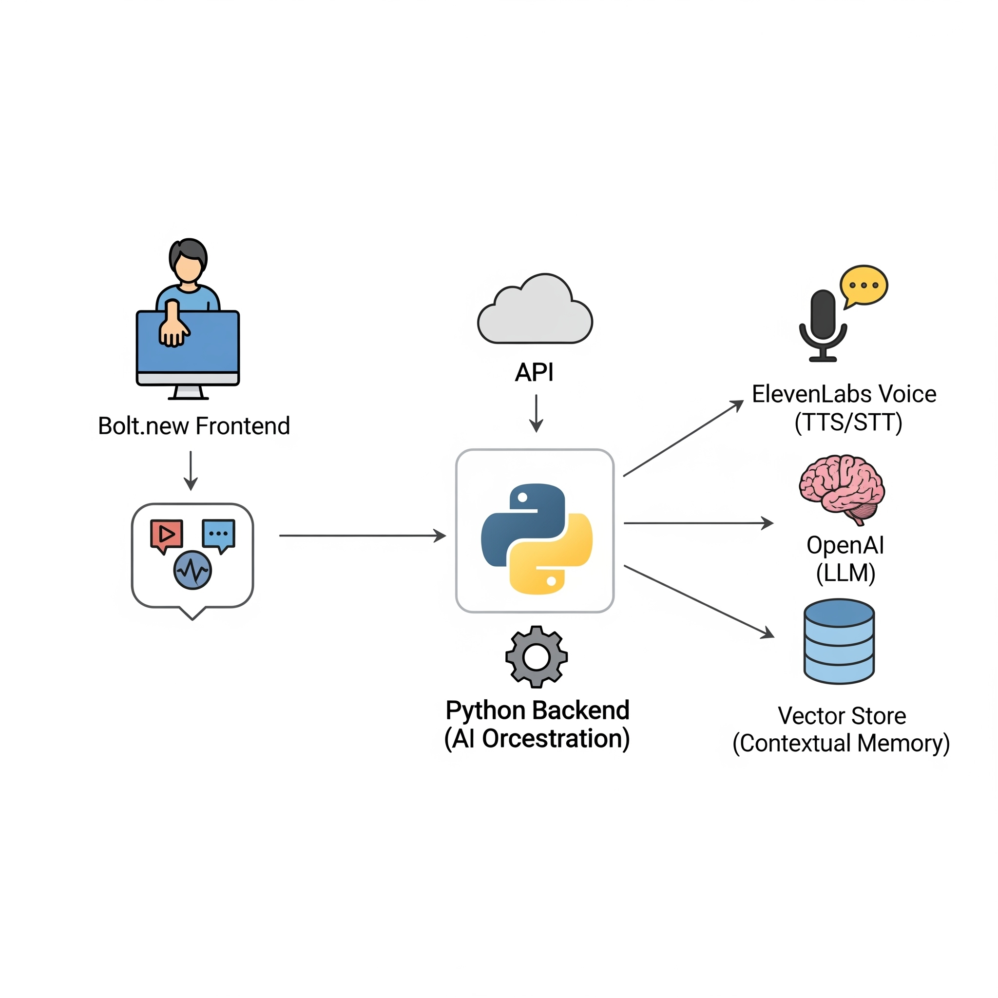 (Self-correction on diagram: Updated arrows for better clarity on data flow - assuming Vector Store provides context to OpenAI, and ElevenLabs is integrated with the backend which uses OpenAI.)