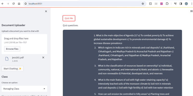- Developed a quiz generation module to create custom, interactive quizzes.