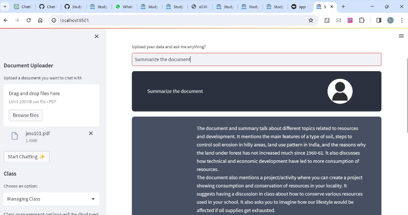 Users can ask any question to get customized answers which has chat history and class recording summary in the backend prompt.