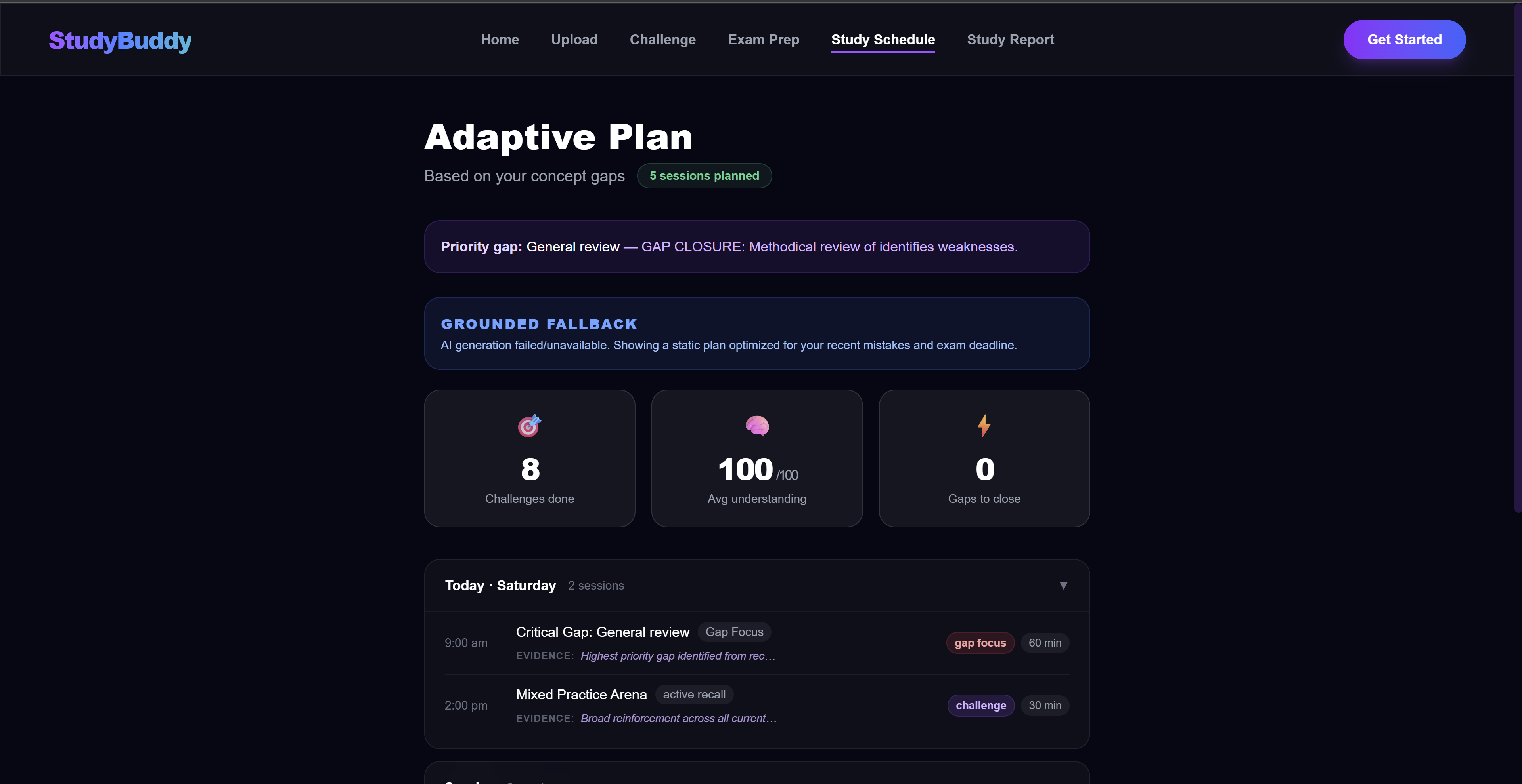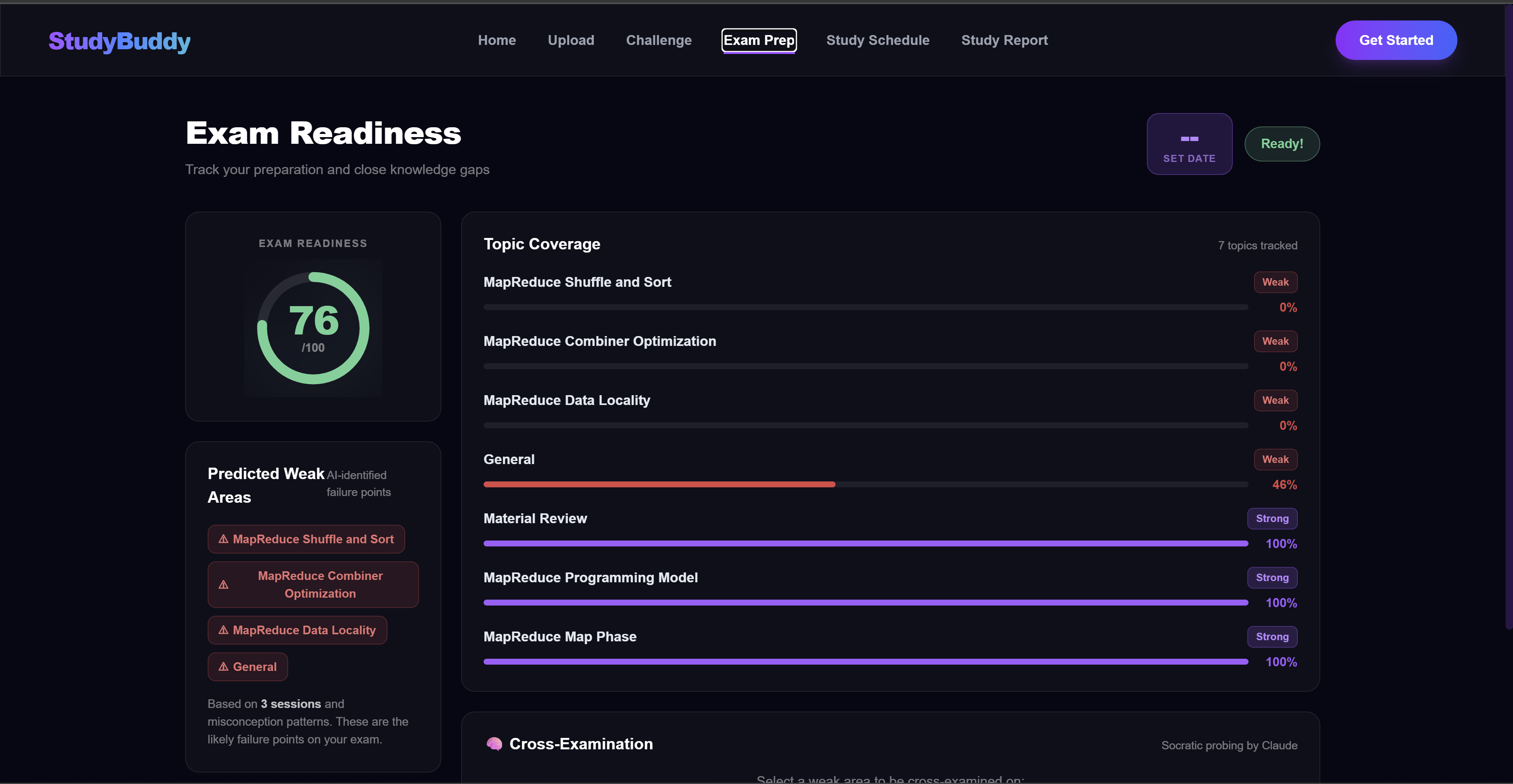 StudyBuddy takes your answer to a question and evaluates the reasoning behind it — not just whether you're right, but how you got there. It identifies specific gaps in your thinking, names the misconceptions it detects, and generates follow-up questions that push you further. Two students can go head-to-head on the same question and see their reasoning compared side by side. The goal isn't to tell you the answer. It's to show you where your thinking breaks down.