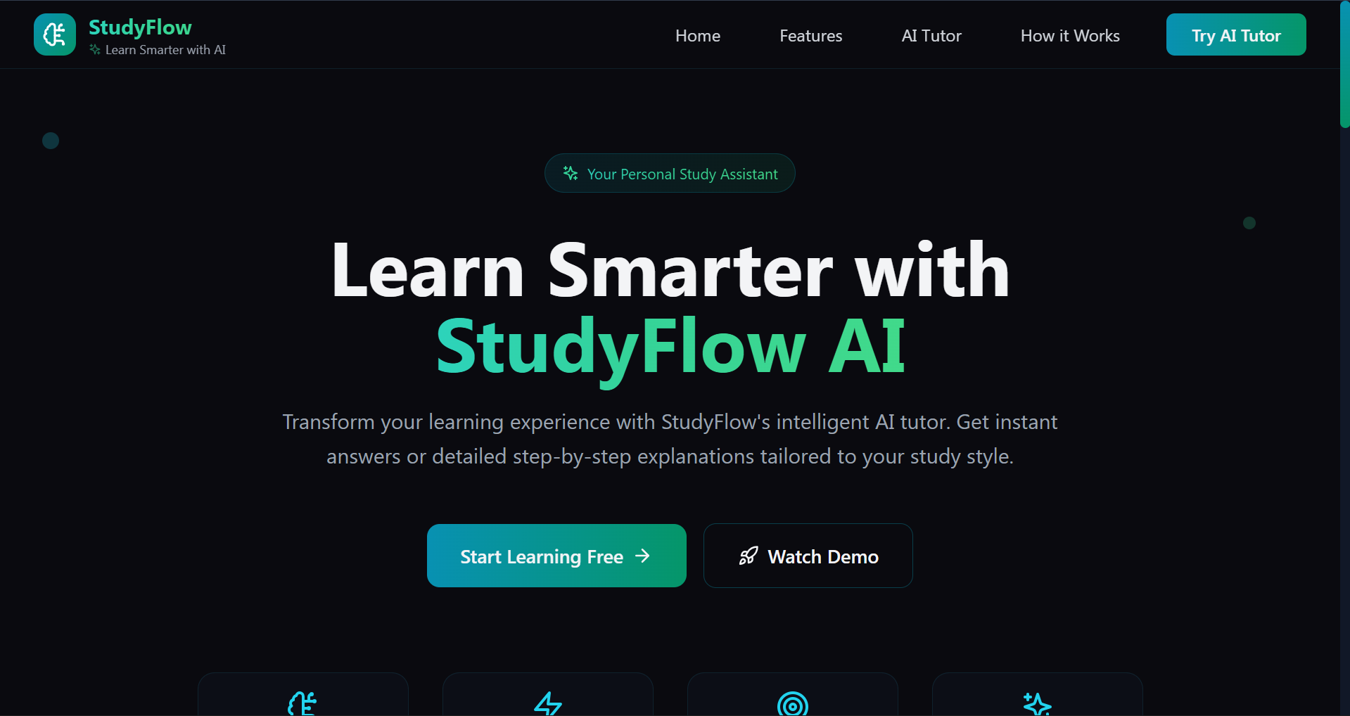 We wanted to make learning easier and more fun for students. Sometimes it’s hard to get help or understand tricky concepts, so we thought—why not have an AI tutor that’s available anytime, tailored to your grade level? StudyFlow lets students chat with an AI tutor. You can ask questions, get quick answers, see step-by-step explanations, and even generate practice tests. It adapts to your grade and the topic, making studying feel personal and interactive. We used React for the frontend and connected it to the Groq AI API for smart responses and test generation. TailwindCSS and Framer Motion helped us create smooth animations and a clean, modern interface. Getting the AI to give answers suitable for different grade levels was tricky. We also wanted the interface to be responsive and visually appealing without slowing anything down. We built a platform that feels alive—students can actually interact with the AI and get meaningful help. It supports multiple grades, different learning modes, and even generates custom practice tests. We learned how to make AI work in a student-friendly way, handle asynchronous responses smoothly, and design an interface that’s both functional and enjoyable. Next, we want to add more subjects, support multiple languages, and include progress tracking so students can see how they’re improving over time.