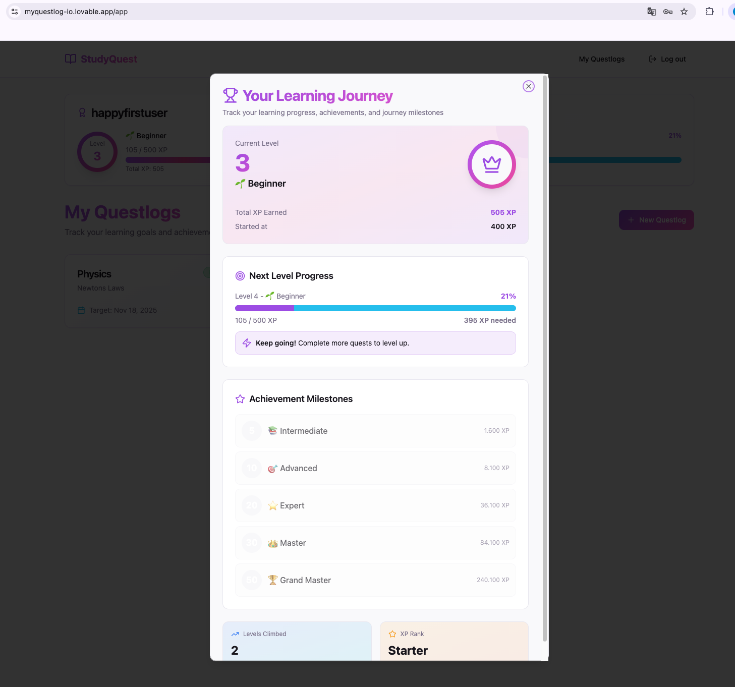 StudyQuest turns any topic into a structured, gamified learning journey.