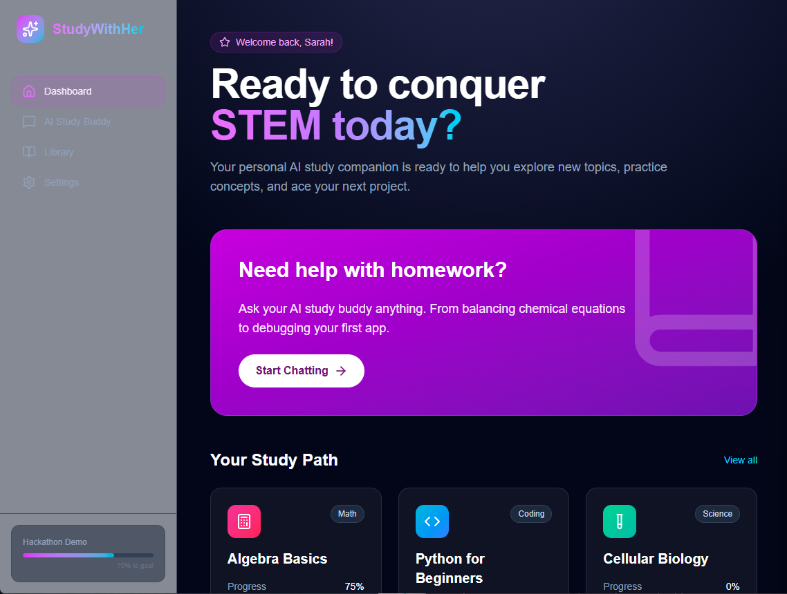 Many girls lose confidence in STEM because concepts feel too hard or inaccessible. Our tool breaks down complex ideas into simple, supportive explanations - like a personal tutor designed for them.